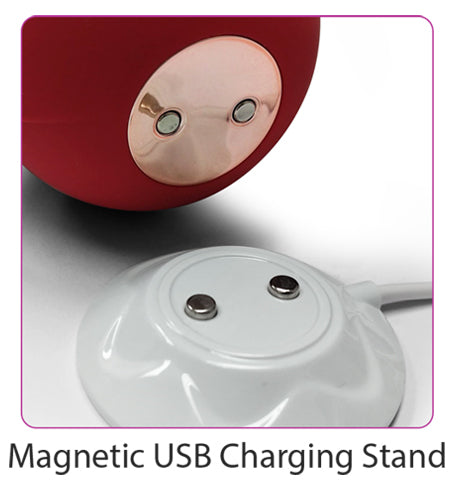 Cloud 9 Health and Wellness Rose Suction Stimulator Red. Discover the unique sensations of this intense Rose Suction Stimulator. Air pulse stimulation engages the entirety of the clitoris, making it perfect for those with sensitivity concerns. Designed to fit into the palm of the hand, this item is discreetly sized and can be tucked into a purse for easy travel. Simulating perfect oral stimulation, this product is ideal for use on the clitoris and nipples.