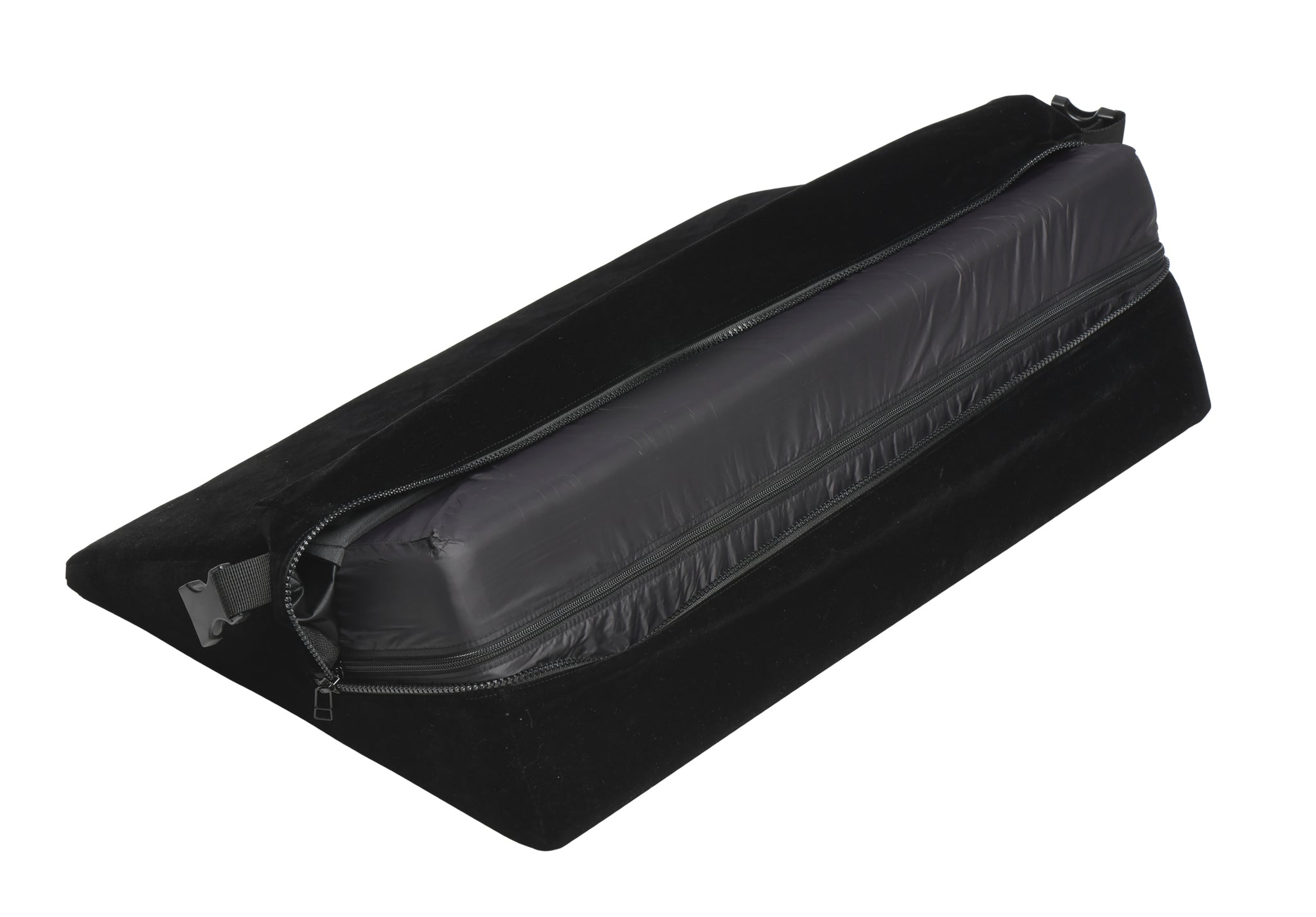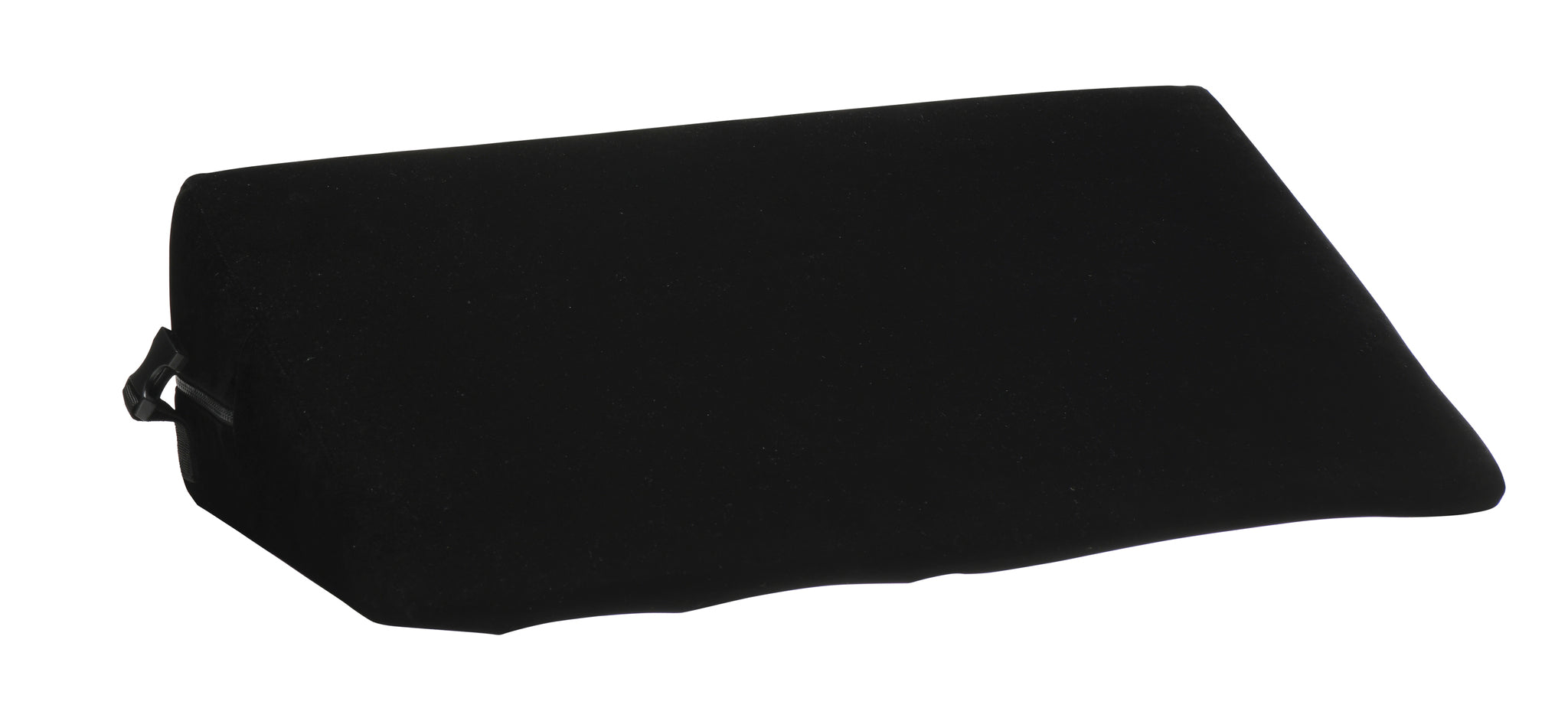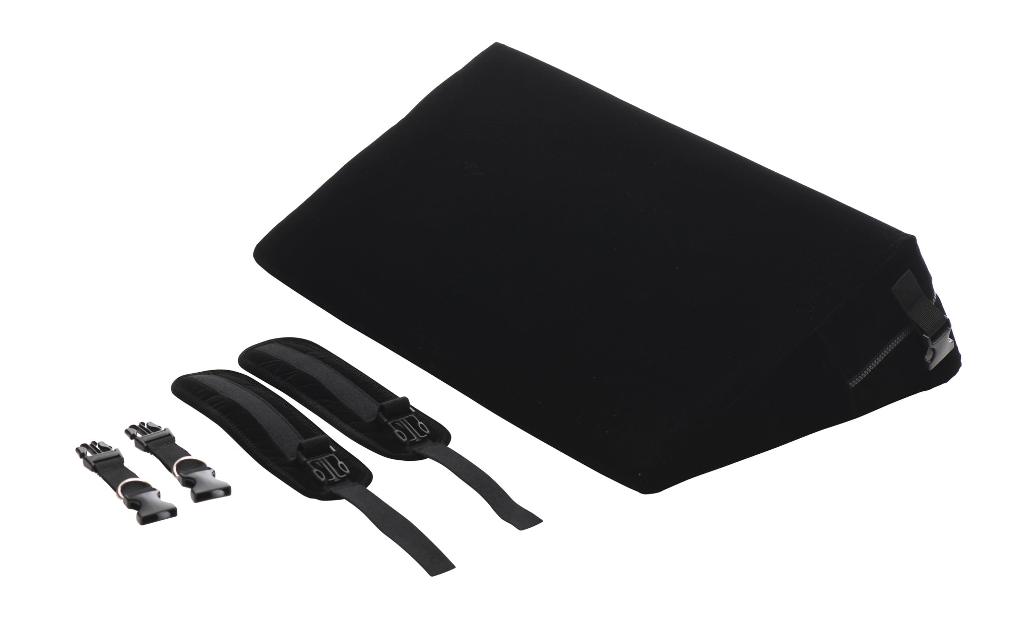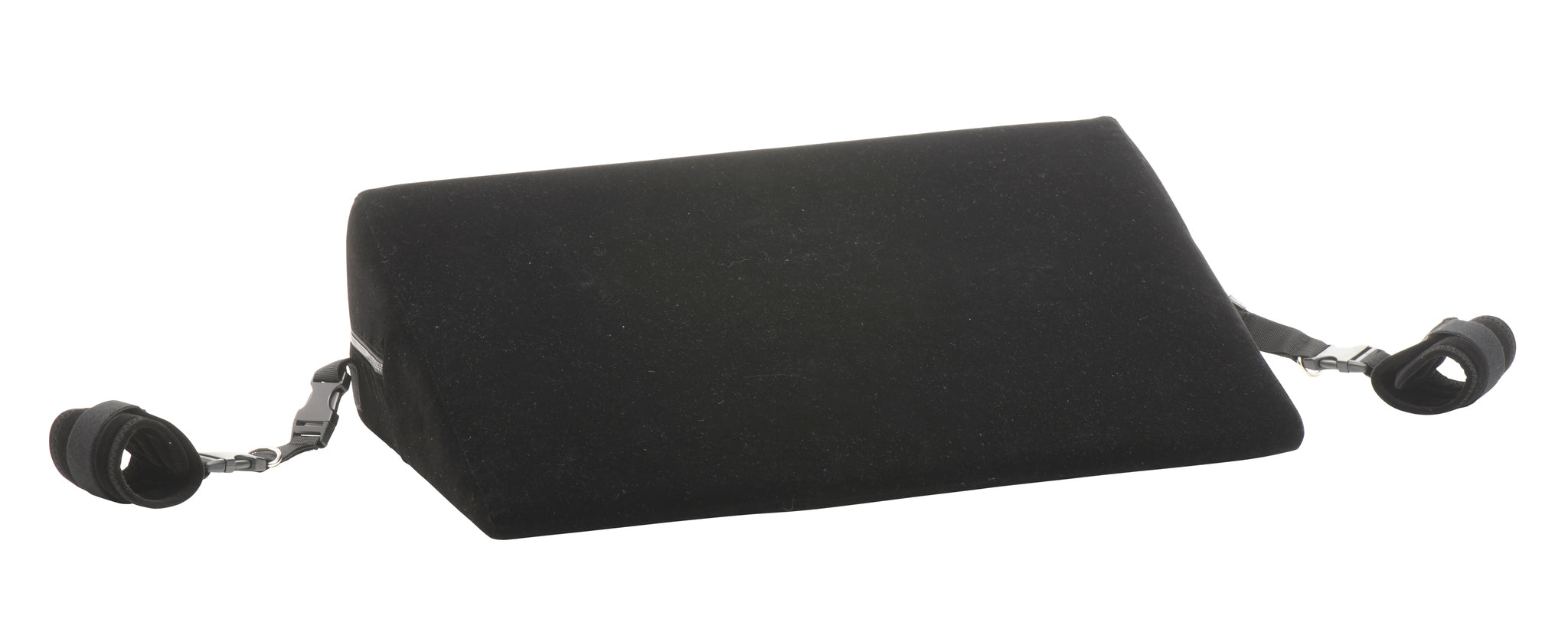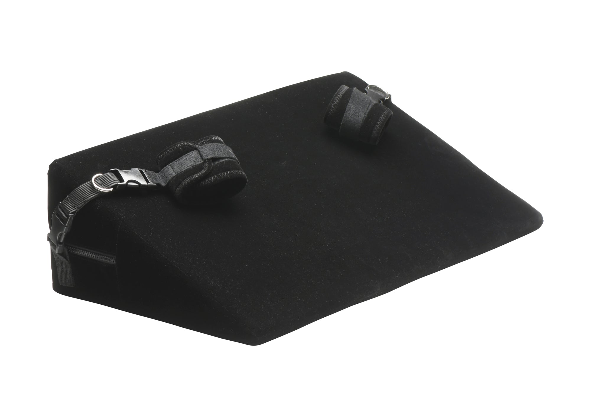 Bedroom Bliss Collection Bondage Cushion from XR Brands. Ride 'em Cowgirl. Deeper penetraion. Find the perfect position with a little elevation from this wedge and keep your partner there with the built in clips for wrist or ankle restraints! This light weight, high density Foam Wedge is covered in a velvety soft outer layer and a water resistant inner layer. It is firm enough to lift you up and has enough softness to keep it sexy. Use it under your shoulders, chest, head, hips or knees to change the way you play! Both inner and outer Pillow covers are machine washable, too! This kinky set includes 2 cuffs and connectors with D-rings and 2 restraint connectors so you can cuff your partner's ankles or wrists to the Pillow. There are also built in clips for restraints or other accessories. The soft outer layer keeps it sexy and sensual as your skin brushes against the fabric while the water resistant, inner layer keeps your Foam Pillow moisture free! This Velvet, Black Wedge goes great with any dark or neutral color decor, can be placed on your bed behind other pillows and used as support when you are sitting up, and is one of the simple yet essential pieces of your sexy Bedroom Collection! Use the Pillow under your hips to tilt your pelvis and get greater access to hitting your G-Spot or P-Spot. Use it under your head for comfort and to lift the neck. Pad your knees as you pound your partner in Doggy style pose! Get on your side and use it between your shins or thighs to easily part your legs as your partner slips in behind you! At any time you can add cuffs or Kinky Bondage Accessories to make it more interesting! Get fun and creative as you enjoy leveling up your love game! Measurements: length 13.5 inches, width 24 inches, height 6.5 inches. Cuffs adjust up to 14.5 inches in circumference. Materials: Velvet Polyester, Polyurethane PU Foam, Nylon, Resin Zipper. Color: Black. Key features: High Density Foam. This Foam keeps its shape and supports your body weight without letting you sink through the Pillow. Ergonomic Design. Designed to support countless positions so you can get the most out of your sensual play! Machine washable covers. The outer cover is soft against the skin and the inner cover is water resistant so the foam stays mildew and moisture free. Easily wash your pillows after play by machine washing them after each use. Bondage Set includes 2 cuffs and connectors with D-Rings and 2 Restraint connectors so you can cuff your partner's ankles or wrists to the Pillow. Categories: Categories: Bondage, Fetish, Kink, Bondage Kits, Sex Swings, Machines and Erotic Furniture, Sex Toys for Couples, Men, Women. 2023.