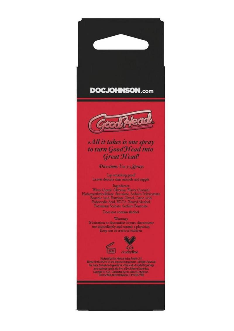 Banish dry mouth during oral sex with GoodHead Juicy Head Dry Mouth Spray. This Sex on the Beach flavored saliva enhancing spray comes in a handy 2 fl. oz. bottle and provides instant moisture and fresh breath. A couple spritzes is all you need for a night of sensual fun! Sugar-free, Vegan Friendly, Paraben-Free and Body Safe.