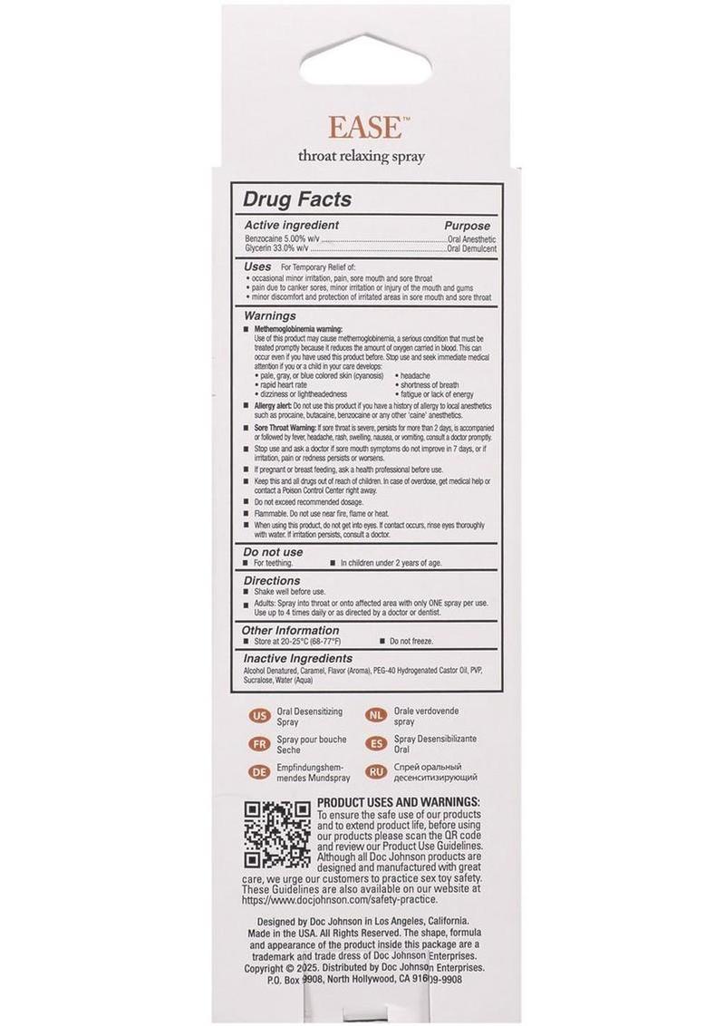 Easy oral has never been easier! Ease offers a delicious mild numbing agent with a delicious Salted Caramel flavored spray. No gag reflex, no discomfort, just a mind-blowing deep throat experience.