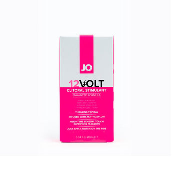 JO 12-Volt electrifies every intimate moment. Just apply a couple drops and this oil-based clitoral stimulant builds in intensity from a tingle to a thrilling, buzzing sensation. The light serum enhances every touch, so it's great for solo or couple's play. Our formula is free of preservatives and does not contain L-Arginine.0.34 Fluid OuncesBuilds In IntensityLasts Up To 45 MinutesEnhances Every TouchGreat for Solo or Couples PlayDo Not Use with Latex or Polyisoprene CondomsPreservative-, Paraben-, Glycerin-, and Propylene Glycol-FreeDoes Not Contain L-ArginineMade in the USAFDA Licensed/ISO Certified100% Pleasure GuaranteeIngredients: Isononyl Isononanoate, Isopropyl Palmitate, Oleyl Alcohol, Zanthoxylum Alatum Extract, Ethylene/Propylene/Styrene Copolymer, Helianthus Annuus (Sunflower) Seed Extract, Rosmarinus Officinalis (Rosemary) Leaf Extract, Tetrasodium Glutamate Diacetate