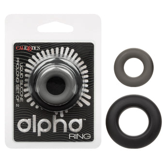 Alpha Liquid Silicone Prolong Set of 2 Rings from California Exotic Novelties. Introducing the Alpha Liquid Silicone Prolong Set of 2, a perfect combination of premium enhancers designed to elevate your intimate experiences and enhance your pleasure. Crafted from high quality Liquid Silicone, these enhancers offer a stretchy, comfortable, and seamless design. The Liquid Silicone material provides a softer, smoother, and more durable experience, ensuring maximum comfort and pleasure during use. The set includes two rings, allowing you to customize your experience and explore different sensations. Whether used individually or combined, these rings provide extra enhancement and support, helping you achieve and maintain stronger and longer lasting satisfaction. Plus, the two different you prefer a tighter fit or a more relaxed one, this set offers versatility to suit your desires. By maintaining a firmer and longer lasting erection, these rings can help prolong your pleasure and intensify your intimate moments. They are designed to enhance your performance and provide heightened satisfaction for both you and your partner. With their waterproof feature, these enhancers can be used in various settings, adding excitement and pleasure to your intimate encounters. Experience the ultimate in comfort, durability, and pleasure with the Alpha Liquid Silicone Prolong Set of 2. Enhance your intimate experiences and discover new levels of satisfaction with this premium ring set.