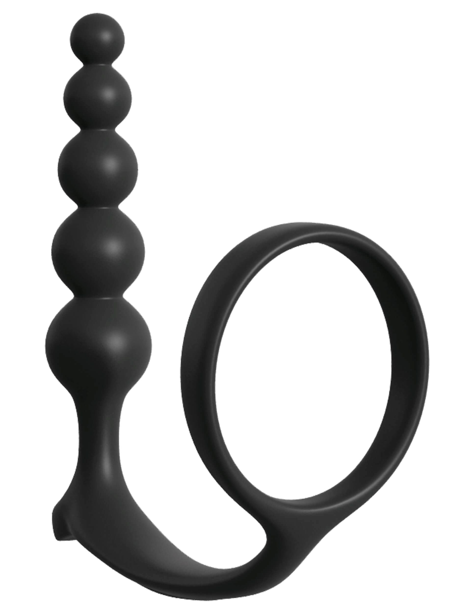 Anal Fantasy Collection Ass-Gasm Cock Ring Anal Beads from Pipedream Products. First time friendly. Anal Fantasy Ass-Gasm Cockring Anal Beads from Pipedream Products. Anal Fantasy Collection Ass-Gasm Cock Ring Anal Beads made from body safe phthalate free materials Silicone. Color black. Enjoy the most explosive ejaculations ever with the Ass-Gasm Cock Ring Anal Beads! Made entirely from our silky smooth Elite Silicone, this wearable plug doubles as a performance enhancing cock ring, allowing the wearer to prolong ejaculation and extend the fun while enjoying incredible prostate stimulation. With the Ass-Gasm Cock Ring Anal Beads in your ass and the ring wrapped snug around your cock and balls, you will stay harder and stronger than ever before! The super stretchy Silicone ring puts the squeeze on performance let downs, maintaining firm erections that last and last!