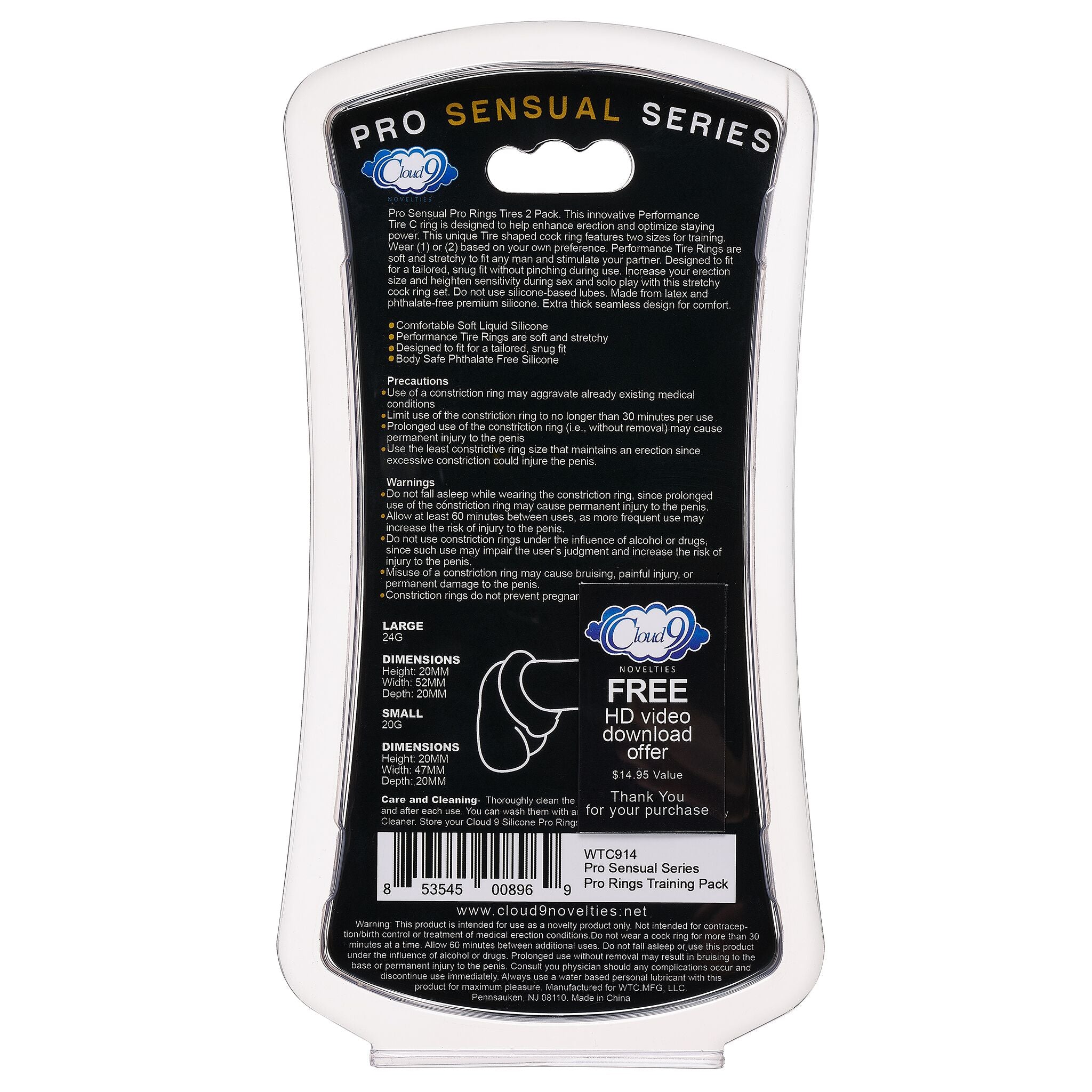 Cloud 9 Pro Rings Liquid Silicone Tires 2 Pack Cock Rings Black. Super soft Liquid Silicone for intense pleasure. 30 days warranty. This innovative performance tire cock ring is designed to help enhance erections and optimize staying power. This unique Tire shaped cock ring features 2 sizes for training. Wear one or two based on your preference. Performance Tire Rings are soft and stretchy to fit any man and to stimulate your partner. Designed to fit for a tailored snug fit. Increase your erection size and heighten sensitively during sex and solo play with stretchy cock ring set. Do not use silicone based lubricants. Made from latex free and phthalate free premium silicone. Extra thick seamless design.Care and cleaning thoroughly after each use with a toy cleaner. Video. MAPs price $19.95 added. Categories: Love Rings, Cock Rings, Stimulating, Men's Cock and Ball Gear. Restricted, Amazon Restricted. 2022.