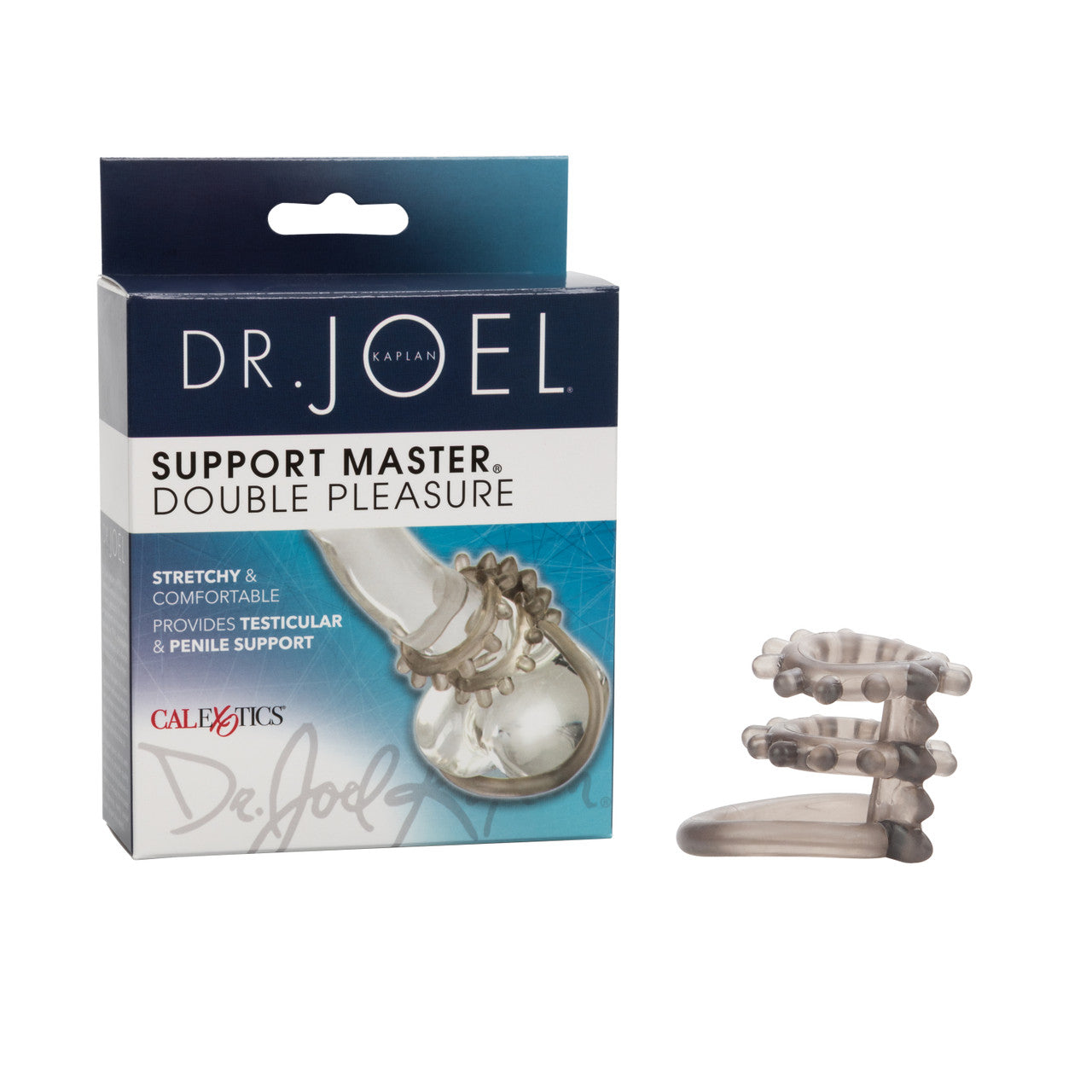Dr. Joel Kaplan Support Master Double Pleasure Rings increase stamina! Stretchy and comfortable erection enhancers provide testicular and penile support. Extend your intimate performance satisfaction with the Dr. Joel Kaplan Support Master Double Pleasure. The sensual enhancer provides combined penile and testicular support for intensified orgasmic delight and hands free placement. The exotic erection keeper is endorsed by Dr. Joel Kaplan and is suitable for first time and experienced users. The super stretchy Dr. Joel Kaplan Support Master Double Pleasure measures a discreet 1.75 inches by 2.5 inches and is made from ultra soft, unscented phthalate free Thermoplastic Rubber TPR. The enhancer is comprised of 3 pliable rings that comfortably stretch around the scrotum and penis shaft. The double penis rings are erotically studded with tantalizing sensuous pleasure nubs that heighten sensitivity and maximize your orgasmic enjoyment. Slip the support ring on the erect penis and indulge in unlimited intimate play. The versatile Dr. Joel Kaplan Support Master Double Pleasure is designed for comfort, stamina support, and erection maintenance. The easy to use cock ring elevates your seduction satisfaction by maintaining a rock hard erection for prolonged play. Use the enhancer during couple’s foreplay fun or while indulging in self gratification ecstasy. To increase the pleasurable tingles and sensations, always use a quality lube with this sex toy. Before and after play, clean the erection enhancer with a toy cleaner spray or mild soapy water. 1 year warranty. Categories: Love Rings, Cock Rings, Couples Cock Rings, Men's Cock and Ball Gear. 2023.