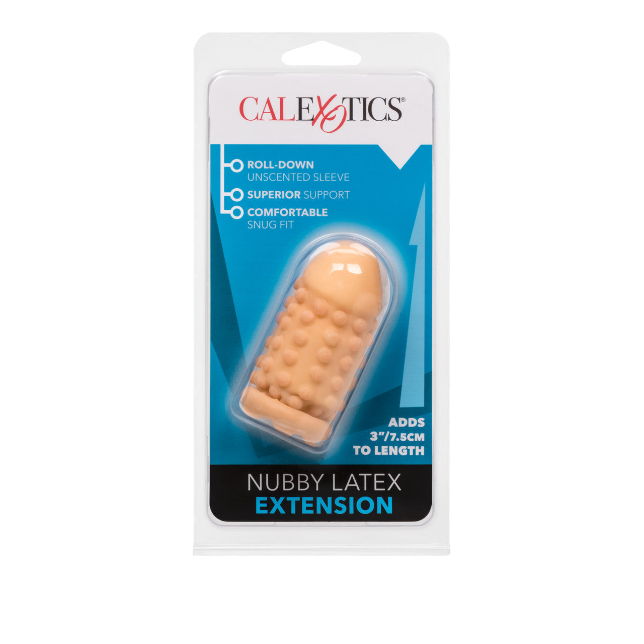 Latex Extension Nubby Cock Head Ivory 3 inches noduled latex Penis Extension. Extend your sensual pleasure with the easy to use, super life like Latex Extension. The flexible, soft and supple Erection Extension is designed to maximize arousal and satisfaction. Elevate your intimate play time fun with the smooth, natural looking head, sensually pleasure beaded for an intensified orgasmic encounter. The discreet Latex Extension is made from super stretchy Latex for the ultimate snug and comfortable fit. The Extension Sleeve features a textured exterior finish and a roll down design, for easy application and removal. The extension instantly adds length to your size for an elevated performance every time. For maximized satisfaction always use a water based lubricant with this toy. The nubby textured Latex Extension is easy to travel with, just for those unexpected encounters. Indulge in secret fantasy play, with this comfortable to wear personal enhancer that is made for mutual pleasure and erotic satisfaction. Before and after every use, remember to clean the Extension with a toy cleaner spray. Safe and pure for body and pleasure. Made using phthalate free, non-toxic materials latex. Extension Sleeve measures 3 inches long by 1.25 inches wide. Bulk weight 0.8 ounce. Always clean before and after use. Made in China. Latex Extension Nubby Cock Head is a register trademark for California Exotic Novelties. Sex toys and sexual wellness. Categories: Penis Extensions, Sleeves, Rings, Male Extensions, Penis Sleeves, French Ticklers. 2023.