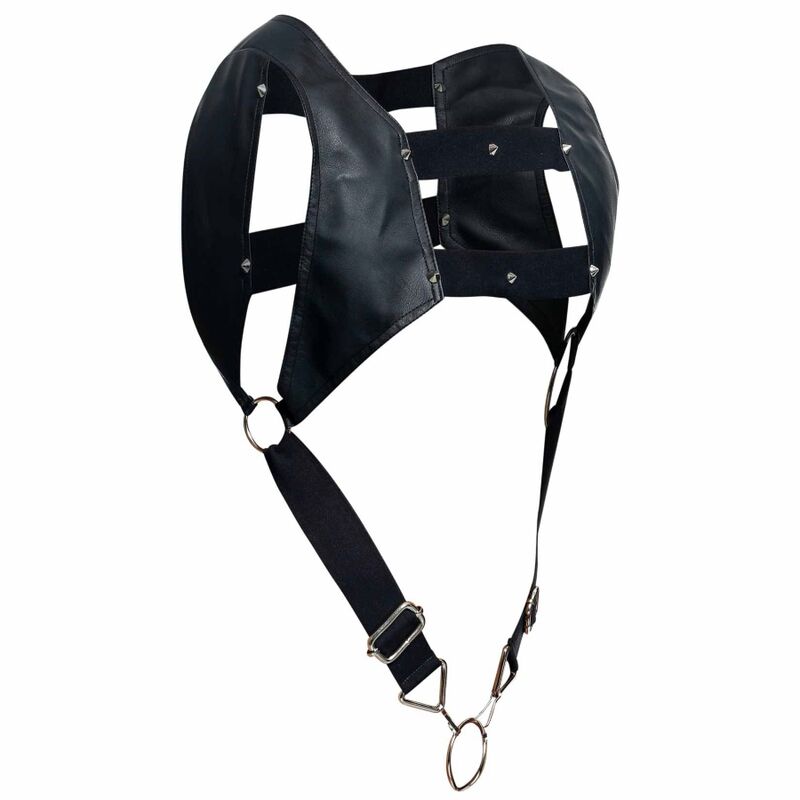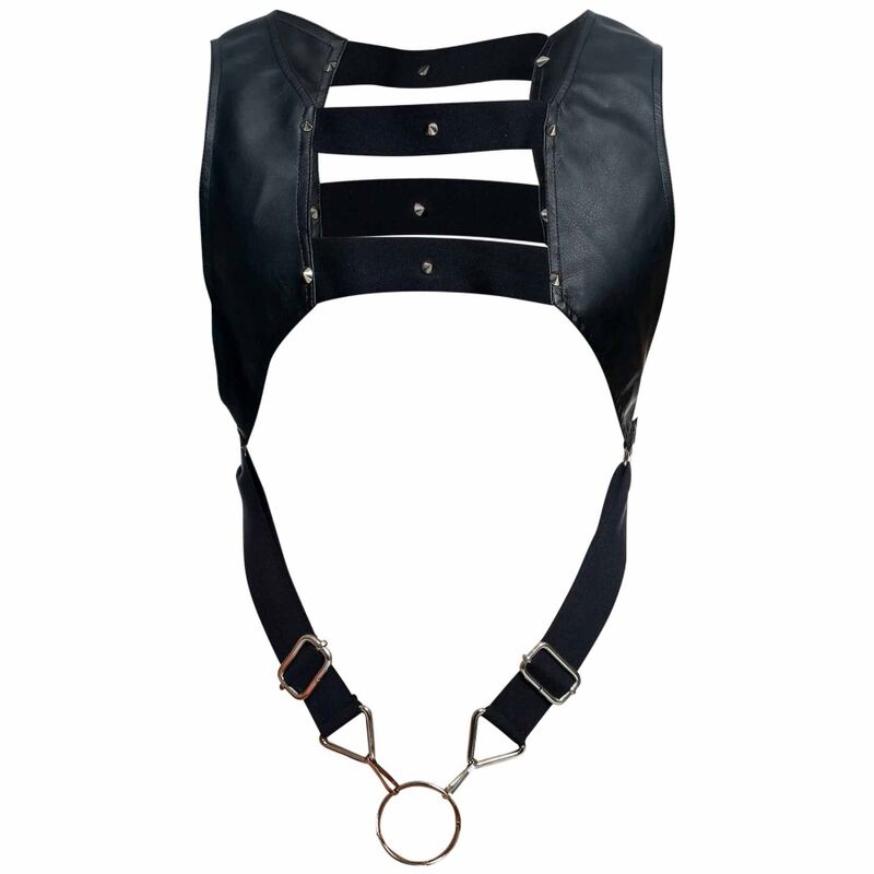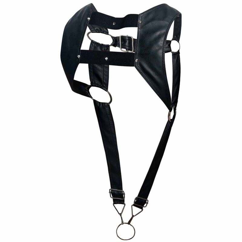 Male Basics Dngeon Crop Top Cock Ring Harness Black O/S. Feel totally in control with the Cropped Harness with Cock Ring, comfortable and practical for bondage play. A cropped front provides a sexy touch of detailing while leaving the abs totally exposed. From behind, a cropped finish allows for maximum support as well as allowing you freedom of movement. Now in new colors. Details: Male Basics SKU DMBL08. Color Black, Red, Printed, Nude. Materials: Faux Leather Harness, Metal cock rings. Brand DNGEON.O/S, One size. Elastic and adjustable. Dngeon. Take a measurement tape and your posture should be nice and straight, without holding in or sticking out your stomach, Locate the bones on the right and left side of the abdomen. For Dngeon measure approximately 5 inches under the belly button. Now locate the range between any of the values on the table and that would be your size. Adjustable size. Dngeon One Size