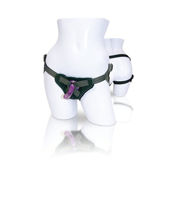 Sportsheets New Comers Strap On and Dildo Set introduce your partner to fantasy back door play with this beginner size silicone dong. 4 way adjustable nylon straps fit 26 to 60 inches hips. Please silicone dildo. Can accommodate dongs with a 1.25 inch width. Machine washable. Sportsheets New Comers Strap On and Dildo Set is a registered trademark for Sportsheets. Keeping couples connected. 18