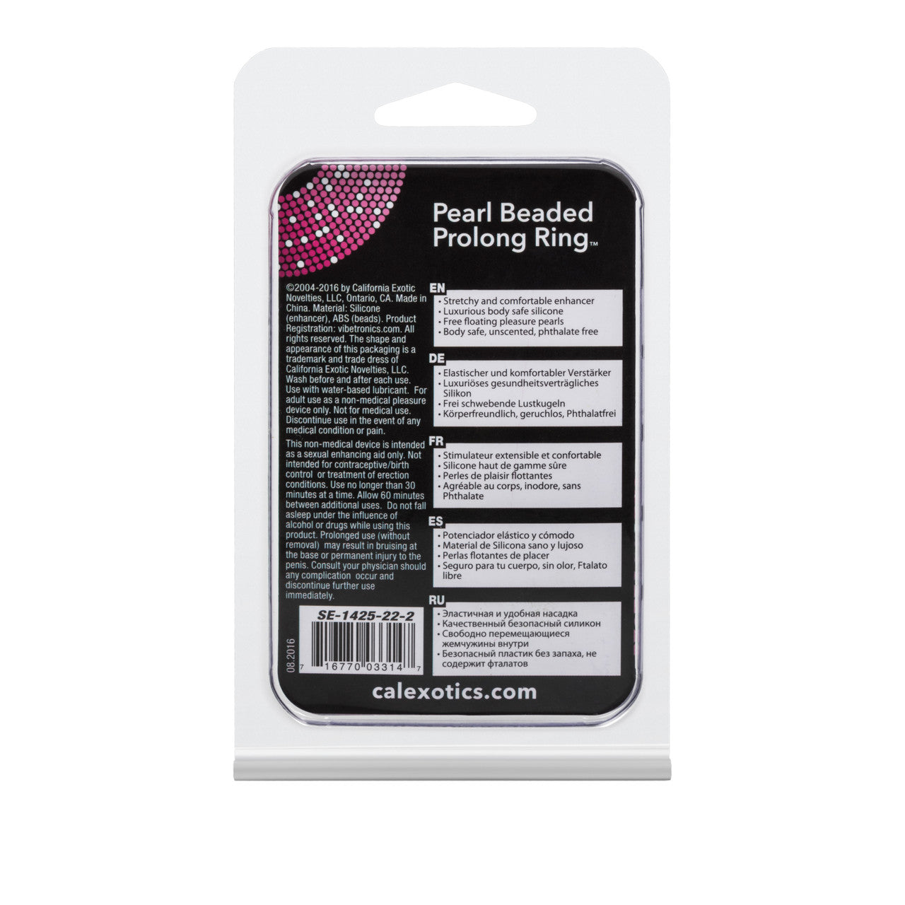 Pearl Bead Prolong Ring from California Exotic Novelties. Sensually beaded for your ultimate stimulation pleasure, the Pearl Beaded Prolong Ring is the perfect exotic toy for the first time and experienced users. The stretchy and flexible Erection Enhancer is designed for performance support and prolonged rock hard erections. The discreet Beaded Ring also delivers tantalizing orgasmic tingles for an unforgettable encounter every time. Elevate your intimacy and enjoy extended satisfaction after lights out. Made from soft and stretchy, superior Silicone, the Erection Enhancer has a smooth textured pearl beaded design for maximum stimulation, and a peral finish. The Enhancer Ring easily slides on to the erect penis for intensified arousal and prolonged play. While the flexible Ring is providing stamina support, the Beads deliver orgasmic sensations that will blow your mind. For increased pleasure and heightened sensitivity, always use a quality water based personal lubricant with this sex toy. The Erection Enhancer is discreet, reusable and great for spontaneous, sensual exploration. Use your imagination and play out your secret fantasies and wild dreams while the Erection Enhancer supports your performance. Use the enhancer for creative seduction after dark. Slide the Silicone Ring on to the Erect Penis, and instantly enjoy increased stamina support and satisfaction. Before and after every use, remember to clean the enhancer with a toy cleaner spray or warm, soapy water. Rinse with warm water. Pat dry before storing. Maintain and stimulate! Pearl Beaded Prolong Ring White. Ring helps prolong erection. Beaded Ring stretches to control male climax while the Beads stimulate her Clitoris. Safe and pure for body and pleasure. Made using phthalate free, non-toxic materials Silicone ring, faux pearl beads. Ring measures 1.5 inches in diameter. Bulk weight 0.1 ounce. Cock Rings when worn around the base of the penis and testicles, many users find that cock rings increase sexual pleasure. Prolong rings, erection enhancement, climax control rings, cock rings. Pearl Beaded Prolong Ring is a registered trademark for California Exotic Novelties. Sex toys and sexual wellness. Categories: Bondage, Fetish, Kink, Love Rings, Sex Toys for Men, Cock Rings, Stimulating Rings, Men's Cock and Ball Gear. 2023.