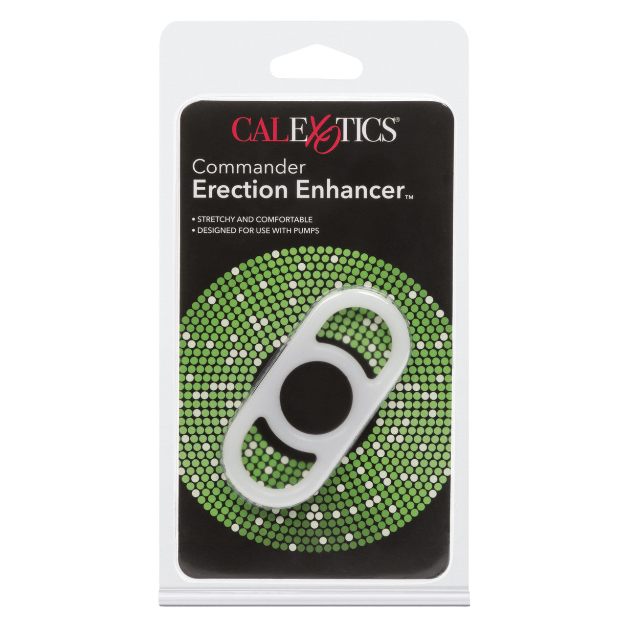 Penis Pump Commander Erection Enhancer from California Exotic Novelties. Super size your intimate pleasure, and erotic performance, with the Penis Pump Commander Erection Enhancer. The stretchy Erection Enhancer is designed for solo use or use with an Erection Pump, for prolonged intimacy and a heightened climax experience. Pump it up, and then maintain your erection with the dual handled Ring. The easy to use Erection Enhancer is made from unscented, superior, Silicone and has a unique double handled design for secure positioning. To use the enhancer ring, stretch the Ring over the Erection Penis Pump opening so that it rests on the flexible donut seal. Once you have achieved the desired Pumped effect, slide the Erection Enhancer off the Pump, and directly onto the erect Penis. Glide down to the base and allow the Ring to maintain stamina support for your elevated performance. Ideal for first time and experienced Pump users, the erection enhancer maintains a rock hard erection for prolonged periods of tantalizing orgasmic play. Take full control of your sensual experience and use the stretchy Ring to explore secret fantasies and exotic pleasure. To maximize the sensitivity and sensations, always use a quality water based personal lubricant with this sex toy. Clean the Enhancer before and after every use. Wash the Ring in soapy water, or clean with a toy cleaner spray. Stretchy 2 handled Erection Ring, designed specifically for use with any Penis Pump. Fits securely on the base of the Pump and easily slips over the penis when erect. Safe and pure for body and pleasure. Made using phthalate free, non-toxic materials Silicone. Stretches to 2.5 inches. Erection Enhancer measures 3.1 inches long by 1.5 inches wide. Bulk weight: 0.3 ounce. Pursuant to 18 U.S.C. 2257, Penis Pump Commander Erection Enhancer was produced on April 11, 2000, and the records required to be kept by that law are available at 14235 Ramona Avenue, Chino, California 91710. Custodian of Records: Susan Colvin. Penis Pump Commander Erection Enhancer is a registered trademark for California Exotic Novelties. Sex toys and sexual wellness. Categories: Sex Toys for Men, Cock Rings, Penis Pump Accessories, Male Pump Accessories, Men's Cock and Ball Gear. 2023.
