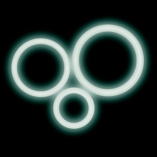 Performance VS4 Pure Premium Silicone Cock Ring Set White Glows in the Dark 3 Pack 3 Sizes Rings. Perform like a porn star with our pure premium silicone cock rings from Performance, a brand you can trust. Stay harder and longer with these male enhancement rings that are a blend of taut and stretchy. It can be stretched up to twice its original diameter. With 3 sizes to choose from for the perfect fit, wear 1 to increase your sexual stamina or wear multiple cock rings around both your cock and balls.