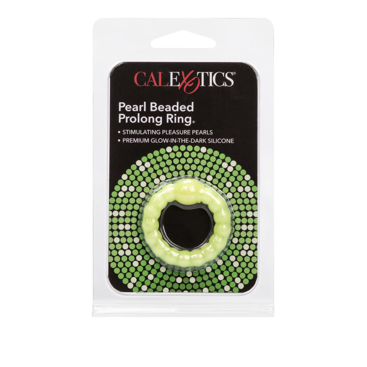 Prolong Beaded Ring Glow In The Dark from California Exotic Novelties. Enhance your erotic encounters with the exotic Prolong Beaded Ring. The stretchy and flexible erection enhancer is designed for intimate support and prolonged rock hard erections. The discreet Beaded Ring delivers tantalizing orgasmic sensations that stimulate your arousal and elevate your sensuous experiences. Slip the Ring on, and take full control of your pleasure, time and time again. Made from soft and smooth, superior Silicone, the Enhancer has a curvaceous tubed design and features 5 Steel stimulation Beads. The Enhancer Ring easily slides on to the erect Penis for instant and intense arousal assistance. The Metal Beads provide additional sensual stimulation during extended fun. Use your imagination and indulge in secret fantasies and wild dreams while the Ring supports and maintains your performance. For increased pleasure and heightened sensitivity, always use a quality water based personal lubricant with this sex toy. The reusable Enhancer is suitable for first time and experienced users, and great for spontaneous solo play. Use the enhancer during erotic intimacy with your lover, for prolonged mutual satisfaction and the ultimate climax experience. Before and after every use, remember to clean the enhancer with a toy cleaner spray or warm, soapy water. Rinse with warm water. Pat dry before storing. Stretchy is a Cock Ring with 5 Metal Beads. Safe and pure for body and pleasure. Made using phthalate free, non-toxic materials Silicone Ring, Steel Beads. Ring measures 1.25 inches in diameter. Bulk weight 0.5 ounce. Cock Rings when worn around the base of the Penis and Testicles, many users find that Cock Rings increase sexual pleasure. Prolong Rings, Erection Enhancement, Climax Control Rings, Cock Rings. Wash before and after each use. Always use a water based personal lubricant with this product for maximum pleasure. Important warning: this novelty product is intended as a sexual enhancing aid. Not intended for contraception, birth control or treatment of erection conditions. Use no more than 30 minutes at a time. Allow 60 minutes between additional uses. Do not fall asleep or be under the influence of alcohol or drugs while using this product. Prolonged use without removal may result in injury to the penis. Consult you physician should any complications should occur and discontinue use. Metallic Bead Ring is a registered trademark for California Exotic Novelties. Sex toys and sexual wellness. Categories: Bondage, Fetish, Kink, Love Rings, Sex Toys for Men, Cock Rings, Men's Cock and Ball Gear. 2023.