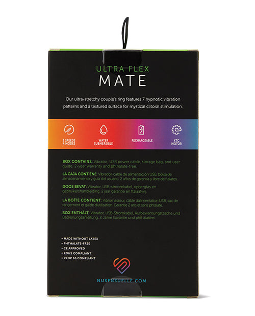 Sensuelle Bullet Ring Black 7 function vibrating couples ring. Have you ever had a craving for something specific, but could not quite put your finger on it? Vibrating Couples Ring. Ultra stretchy Couple's Cock Ring designed to build intimacy. 3 speeds + 4 pulsations. Designed for Penis and Clitoral stimulation. Harness compatible. XTC Motor. Power level: 2. Motor sensation: fusion blend + buzzy. Rechargeable vibrations. Water submersible for out of the bedroom play! Bathtub compatible. Body safe. This ultra stretchy couple's cock ring is designed to enhance the intimacy between partners. With 7 unique vibration patterns to amplify your natural rhythm and a textured surface for clitoral stimulation, the Bullet Ring will enhance your shared experience. Harness friendly and compatible with other products such as the Joie, Remote Control Bullet Plus, and Ace. Whether you choose to customize your experience or use the ring as is, this couple's ring offers something to both parties involved. Have you ever had a craving for something specific, but could not quite put your finger on it? We get it, so we designed our Silicone Bullet Ring to do just that, put a finger on it. Because every body is different, not all rings hit the right spot for all partners. Our unique design adds an elevated wing to deliver wonderful waves of stimulation directly to your partner’s most sensitive spot without the trial and error of finding the perfect position. Making the silky smooth Ring move is our 7 function Bullet Vibrator that features our specially designed motor that delivers crazy power uniformly across the whole surface of the toy. Both Bullet Vibrator and sex toy have premium Silicone surfaces for ultimate comfort. The bullet is USB rechargeable and 100% waterproof. So, get ready to press your partner’s buttons and turn play time into fun play time!