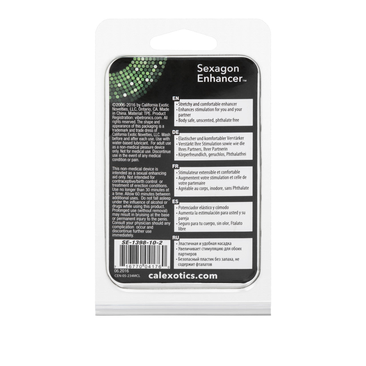 Sexagon Enhancer Ring from California Exotic Novelties. Enhance your erotic sensual pleasure and performance with the Sexagon Enhancer. The easy to use, super soft and stretchy Erection Enhancer provides comfortable support for increased girth, heightened sensitivity and extended intimate play. To enjoy unlimited orgasmic fun, simply slip the Hexagon Shaped Enhancer over the erect penis and prepare for arousal, stimulation, and penetration ecstasy. The Enhancer Ring is made from unscented, stretchy Thermoplastic Elastomers TPE and has a unique Hexagonal design. The easy to use, discreet Erection Enhancer measures 1.5 inches in diameter and stretches to provide a comfortable and secure intimate fit, whatever your Penis size. The Enhancer’s flexible internal grippers ensure that the supportive Ring stays firmly in place, while you enjoy erotic sensual stimulation, thrilling tingles and mind blowing desires. To increase sensitivity, and to extend personal pleasure even further, always use a quality water based personal lubricant with this sex toy. Ideal for first time and experienced users, the Enhancer maximizes seduction satisfaction every time. The stretchy Enhancer increases girth and provides all the support that you need for extended exotic encounters. For unlimited sensuous exploration, slip the shaped Ring over the erect penis at the start of self gratification fun or passionate couple’s play. The Ring is designed to super size your Penis and tantalizing climax pleasure. Before and after every use, remember to clean the hexagonal enhancer in warm, soapy water, or with a toy cleaner spray. Rinse with warm water. Pat dry before storing. Ring is an Erection Enhancer for comfortable support and increased girth. Stretchy soft Ring sexually enhances and adds girth. Safe and pure for body and pleasure. Made using phthalate free, non-toxic materials Thermoplastic Elastomers TPE. Ring measures 1.5 inches in diameter. Bulk weight 1.2 ounces. Cock rings when worn around the base of the penis and testicles, many users find that cock rings increase sexual pleasure. Prolong rings, erection enhancement, climax control rings, cock rings. Sexagon Enhancer Ring is a registered trademark for California Exotic Novelties. Sex toys and sexual wellness. Categories: Bondage, Fetish, Kink, Love Rings, Sex Toys for Couples, Men, Women, Cock Rings, Men's Fetish Wear, Men's Cock and Ball Gear. 2023.