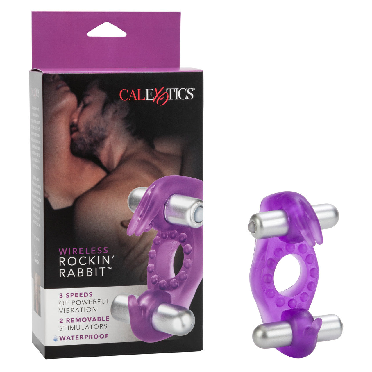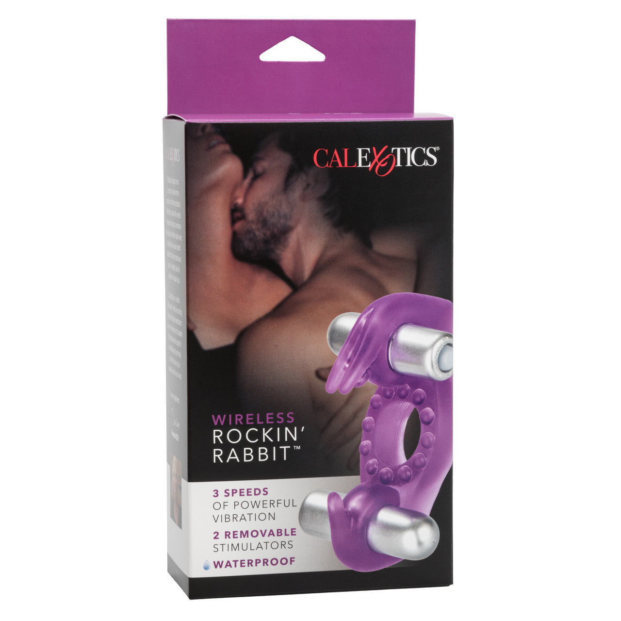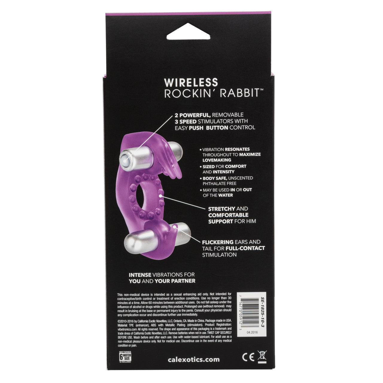 Wireless Rocking Rabbit Ring from California Exotic Novelties. Now Wireless! Enjoy tantalizing pleasure with the Wireless Rockin Rabbit. The discreet couple’s enhancer delivers simultaneous ecstasy for him and her, and an unforgettable orgasmic experience you will not soon forget. The easy to use, supportive Erection Ring also boasts 2 powerful wireless vibrating bullets that take your seduction to new heights. The set comprises of a super soft and stretchy, phthalate free Thermoplastic Elastomers TPE Ring that is studded with textured pleasure nubs, a Rabbit Clitoral Teaser built to accommodate dual 3 speed Bullet Vibrators. The Silver Plated ABS Plastic Stimulators easily slip into the sleeves for instant and mutual Arousal and stimulation. The Rocking Rabbit Ring features Flickering Ears and Vibrating Tail action for an intensely satisfying encounter. Enjoy spontaneous amorous and shared orgasmic delight. The removable wireless Bullet Vibrators can also be used to independently explore sensitive sweet spots all over the body. Use a quality personal lubricant, with this adult toy, to heighten sensitivity and to increase the pleasurable erotic tingles and sensations. Rockin Rabbit let you create intimate ecstasy with explosive simultaneous orgasms! One of our best sellers is now wireless! Total ecstasy with simultaneous orgasms with this soft, stretchy, comfortable Enhancer with fluttering Rabbit Ears and Teaser Tail. Removable 3 Speed Wireless Bullets may be used independently. Two multiple speed Bullet Vibrators dual controls for independent use. Waterproof for play outside the bedroom. Safe and pure for body and pleasure. Made using phthalate free, non-toxic materials Thermoplastic Elastomers TPE Enhancer, ABS Plastic with Silver Plating Bullet Vibrators. Enhancer measures 4.25 inches long by 1.75 inches wide. Bullet vibrator measure 2.25 inches long by .75 inch wide. Bulk weight: 3.7 ounces. Vibrating cock ring requires 6 watch size batteries to power up, 12 included. Always clean before and after use. Colors may vary. Wireless Rockin Rabbit Ring is a registered trademark for California Exotic Novelties. Sex toys and sexual wellness. Made in the USA. Categories: Love Rings, Cock Rings, Couples Cock Rings, Vibrators, Vibrating, Love Rings. 2023.