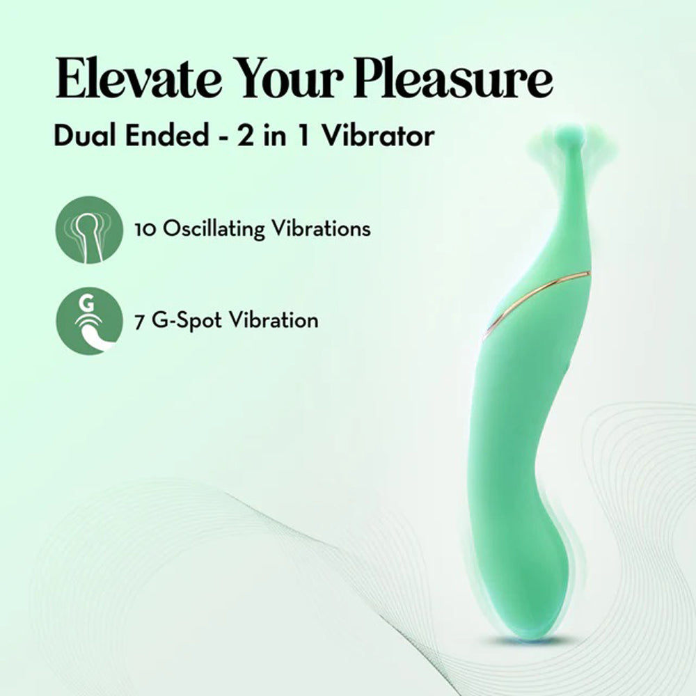 Meet Stella, your elegant companion for intimate exploration. Beautifully designed, this dual-ended wand combines 10 oscillating vibrations and 7 G-Spot vibration settings (3 speeds and 4 patterns) to ignite your deepest desires. With its targeted oscillation and deep, rich dual motor technology, Stella invites you to explore new heights of pleasure with effortless precision and grace. Designed with a sleek, ergonomic G-Stim ridge, Stella enhances every touch. Its independently controlled vibration points allow for a fully customizable experience. Crafted from 100% body-safe silicone and wrapped in satin-smooth UltraSilk, Stella feels irresistibly luxurious and soft against your skin. With an IPX7 waterproof design, indulge in Stella's pleasures during a relaxing bath or shower. Magnetic USB charging ensures it's always ready when you are. Compact and powerful, Stella is ideal for solo or partnered play, making every encounter unforgettable. Let Stella take you all the way.