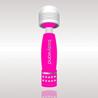 Bodywand Mini Neon Pink Massager. The Bodywand Mini Massager is the party girl of the bunch. Like a neon night on the town, the Mini Massager glows in aqua rhinestones, compact enough to fit into any purse. But do not be fooled by size. The Bodywand Mini Massager delivers maximum power. The rounded, soft touch head is mounted on a flexible neck to reach all angles and best of all, this 4 inches firecracker is completely splash-proof for use in all environments. It is powered by six 6 AG13, LR44 watch batteries, all of which are included.