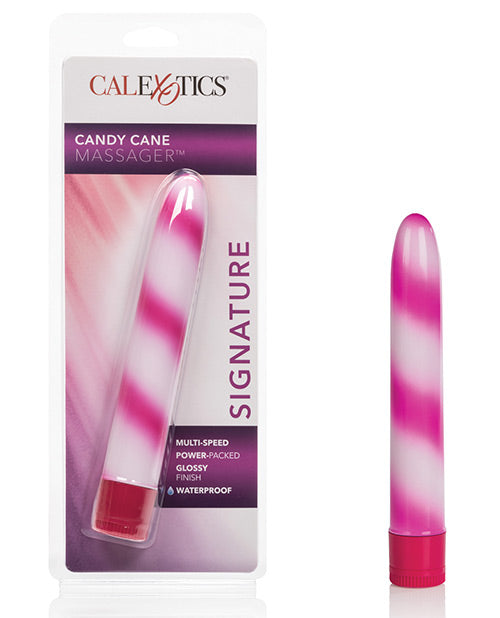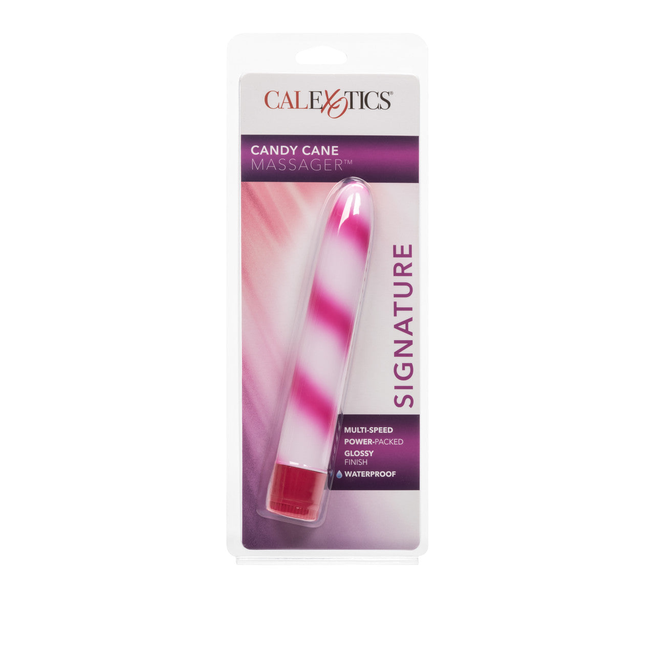 Waterproof Candy Cane Pink Massager 7 inches Hard Vibrator from California Exotic Novelties. Tantalize and stimulate your most erotic sweet spots with the Candy Cane Massager. The power packed, multiple speed vibe is sleek, smooth, and perfect for exotic experimental solo play whenever you are in the mood for pleasure. The vibrating waterproof adult sex toy is ideal for spontaneous fun in the hot tub, bath or shower, and perfect for beginner and experienced users. Massager measures a generous 6 inches by 1 inch, the adult toy is made from durable, unscented phthalate free ABS Plastic and has a distinctive and funky candy cane stripe design. The battery operated stimulator powers up unlimited sensual satisfaction with 2 AA batteries. Just insert the batteries into the end cap, and twist to control the multi-speed vibrations. Select your preferred pace, and enjoy the unforgettable experience. Use the sensuous stripy vibe for mind blowing orgasmic pleasure of the self gratification kind or as part of seductive couple’s foreplay fun. The Candy Cane Massager is the perfect intimate companion. The sleek personal Massager can be used to arouse, excite and stimulate super sensitive erogenous zones all over the body, and is recommended for use with a long lasting, quality water based personal lubricant. Enjoy a memorable experience every time, with this versatile adult toy that is designed for your sweet ecstasy. Before and after every use, clean the vibrator with a sex toy cleaner, or wash it in warm soapy water. Pink candy candy striped colored waterproof multiple speed vibrator. Adds to adult fun with its candy cane design. Vibrator is made using phthalate free, non-toxic materials: ABS Plastic. Massager is powered by 2 AA batteries, not included. Do not leave batteries in vibrator in between uses. Vibrator measures 6 inches long by 1 inch wide. Bulk weight 2.4 ounces. A water based lubricant is recommended. Cal Exotics categories: For Women, Vibrator, Vibrators. Candy Cane Pink Massager is a registered trademark for California Exotic Novelties. Sex toys and sexual wellness. Categories: Vibrators, Classic Vibrators, Firm, Hard Vibrators, Sex Toys for Couples, Men, Women, Holiday items, Xmas Gifts. 2023.