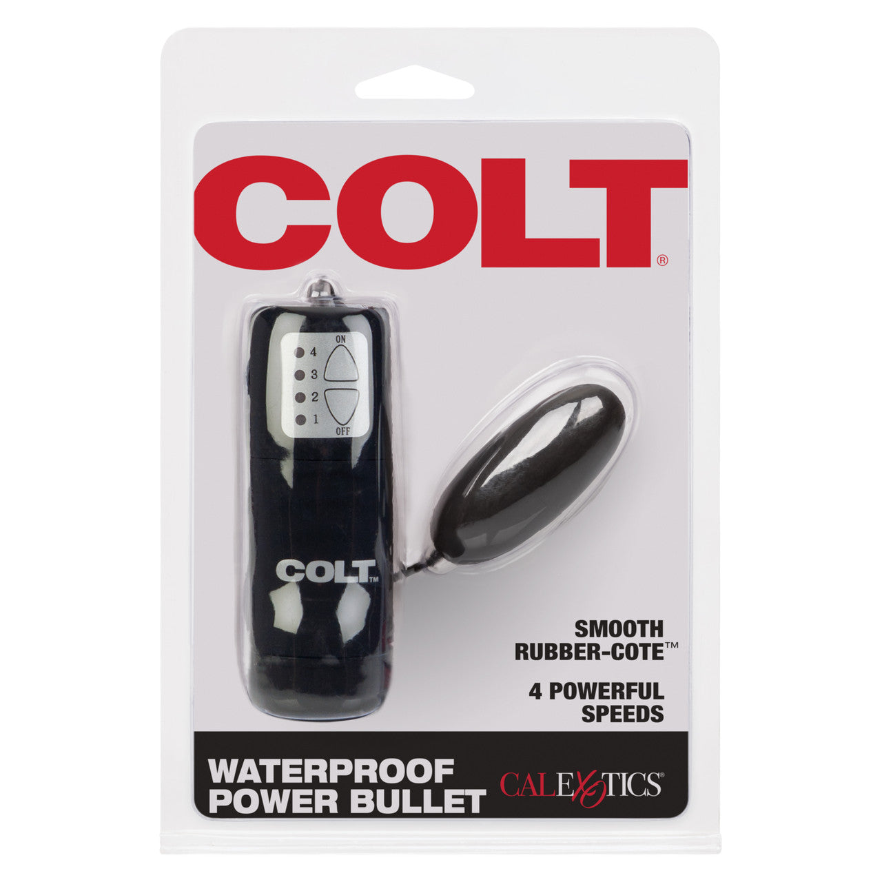 Colt Gear Waterproof Power Bullet from California Exotic Novelties. The Colt Waterproof Power Bullet is a power packed vibrating bullet with a smooth Rubber Cote controller for easy handling. Featuring four impressive speeds with LED lights for easy operation, this awesome bullet vibrator is as safe as it is satisfying. Crafted entirely from ABS Plastic with Rubber Cote Polyurethane PU Cote. This versatile waterproof vibrating stimulator provides intensely satisfying sensations that will have you craving more, more, more. This sleek bullet vibrator is built to last and built to create the ultimate in vibrating pleasure. You can not beat its thrilling levels of sensation and enjoyment. Deliciously hedonistic, the waterproof bullet vibrator provides the perfect way to achieve new fantasies and a vibrant experience. So what are you waiting for? You will achieve intense stimulation that is sure to satisfy. Both flexible and durable, for long lasting gratification, the Colt Waterproof Power Bullet Vibrator offers powerful sensations for the utmost in sensual pleasure. Hygienically superior and incredibly gratifying, just get ready to enjoy the exciting stimulation and pleasure flying solo or with a partner. Totally waterproof, power packed, vibrating bullet with smooth Rubber Cote controller for easy handling. Multiple speeds of vibration. Safe and pure for body and pleasure. 4 speeds with LED lights. Made using phthalate free, non-toxic materials ABS plastic with Rubber Cote Polyurethane PU Cote. Vibrating sex toy requires 2 AA batteries, not included. Do not leave batteries in the vibrator between uses. Bullet vibrator measures 2.25 inches long by 1 inch wide. Bulk weight 2.7 ounces. A water based lubricant is recommended. Always clean before and after use. COLT Waterproof Power Bullet Vibrator is a registered trademark for California Exotic Novelties. Sex toys and sexual wellness. Categories: Vibrators, Bullets, Eggs, Sex Toys for Couples, Men, Women, Vibrating Bullets and Eggs. 2024.