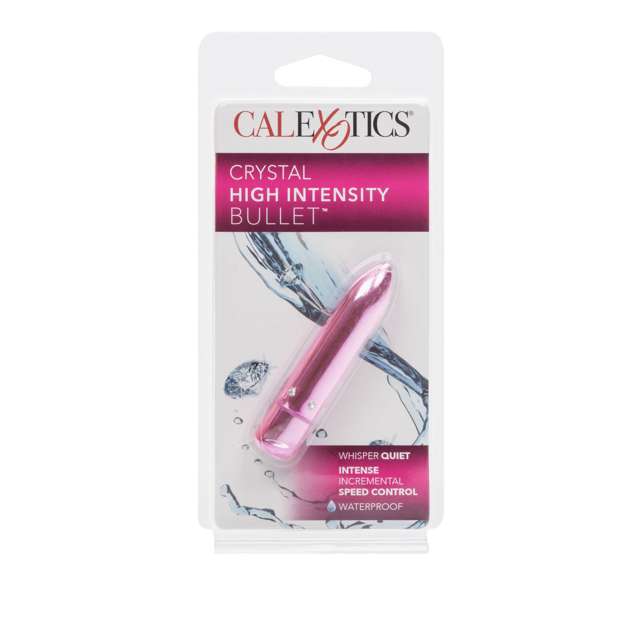 Specifications: 1 N battery, included. Bullet vibrator measures 3.25 inches long by .75 inch. Special features of sex toy waterproof vibrations plus multiple speeds. Made using phthalate free, non-toxic materials: ABS Plastic with Metallic Plating. 1 year warranty. Crystal High Intensity Bullet is a registered trademark for California Exotic Novelties. Sex toys and sexual wellness. Categories: Vibrators, Bullets, Eggs, Sex Toys for Women, Vibrating Bullets and Eggs. 2023.