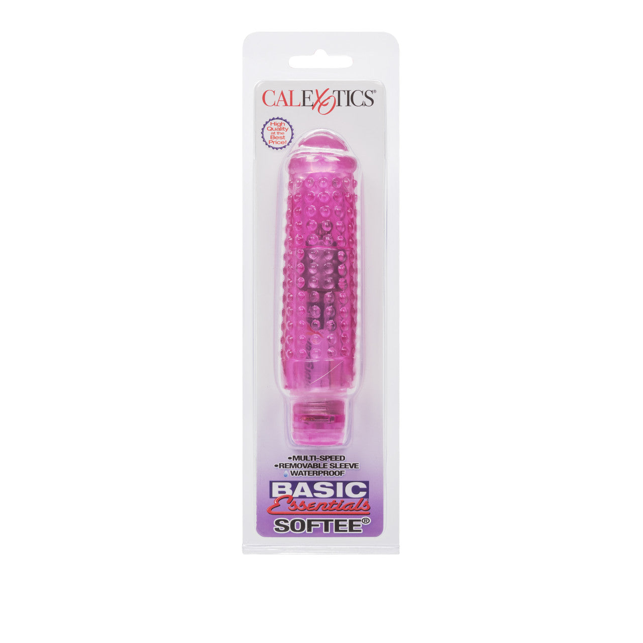 (D) Basic Essentials Softee Pink Vibrator Sleeve Set. Basic Essentials Softee Vibes as power packed, soft, and sensually ribbed Massagers. One of the high quality, feature packed couples products from the Basic Essentials line, this is a great addition to any adult toy collection, at a price that can not be beat. With a removable Sleeve for independent use and multi-speed capability, the Softee Vibes are crafted with a Thermoplastic Rubber TPR Sleeve and an ABS Plastic Massager, making your pleasure completely safe as well as totally fun. Basic Essentials Softee Vibes are stretchy and comfortable, designed to heighten your pleasure while keeping you safe and satisfied. Pretty in Pink, the Softee Vibes enhance and stimulate for the ultimate in gratification. The pleasure will all be yours with an incredibly gratifying experience. Durably crafted, these Vibes offer the ultimate in sensual comfort. So add some more excitement to your bedroom experience with this thrilling Massager. Basic Essentials are high quality, feature packed products for couples that enhance lovemaking at an unbeatable price. Why wait? Basic Essentials Slim Softee Vibes can give you all the sensation you crave. Basic Essentials Softee Pink Vibe is waterproof vibrator and sleeve set. Basic Essentials are high quality, feature packed products for couples that enhance lovemaking at a price that can not be beat! A great addition to any sex toy collection! Power packed, soft, sensually ribbed Massager. Removable Sleeve for independent use. Multiple speed vibrations. Safe and pure for body and pleasure. Made using phthalate free, non-toxic materials Thermoplastic Rubber TPR Sleeve, ABS Plastic Vibrator. Vibrator measures 5.5 inches long by 1.5 inches wide. Vibrating sex toy requires 1 AA battery, not included. Always clean before and after use plus between partners. To increase the life of all sex toys remove the batteries prior to storage. Colors may vary. Basic Essentials Softee Vibe is a registered trademark for California Exotic Novelties. Sex toys and sexual wellness. Categories: Vibrators, Classic Vibrators, Sex Toys for Couples, Men, Women, Vibrator Kits, Straight Vibrators with Sleeves, Vibrator Sleeves. No longer available. 2023.