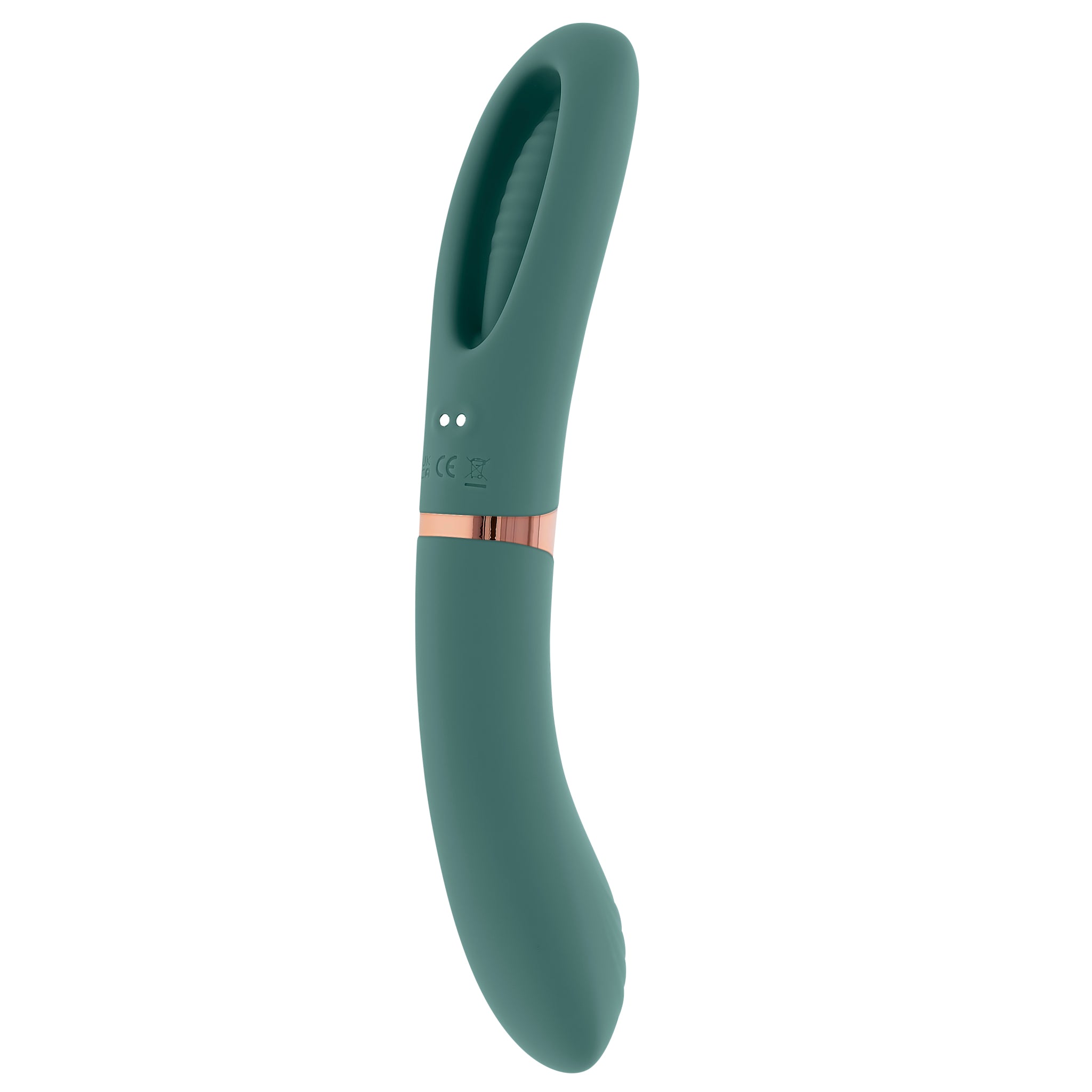 Specifications: Height 9.44 inches, Depth 1.65 inches, Width 1.65 inches. Shaft insertable length 4.75 inches, Insertable diameter 1.42 inches. Flicking end insertable length 4.5 inches, Insertable diameter 1.65 inches. 2 motors with 10 speeds and patterns each. Made from body safe phthalate free and latex free Silicone and rose gold finished ABS Plastic. USB Magnetic Rechargeable, cable included. Waterproof and submersible. Categories: Vibrators, Classic Vibrators, Eco-Friendly Sex Toys, Rechargeable Vibrators, G-Spot Stimulators, Sex Toys for Women. 2024.