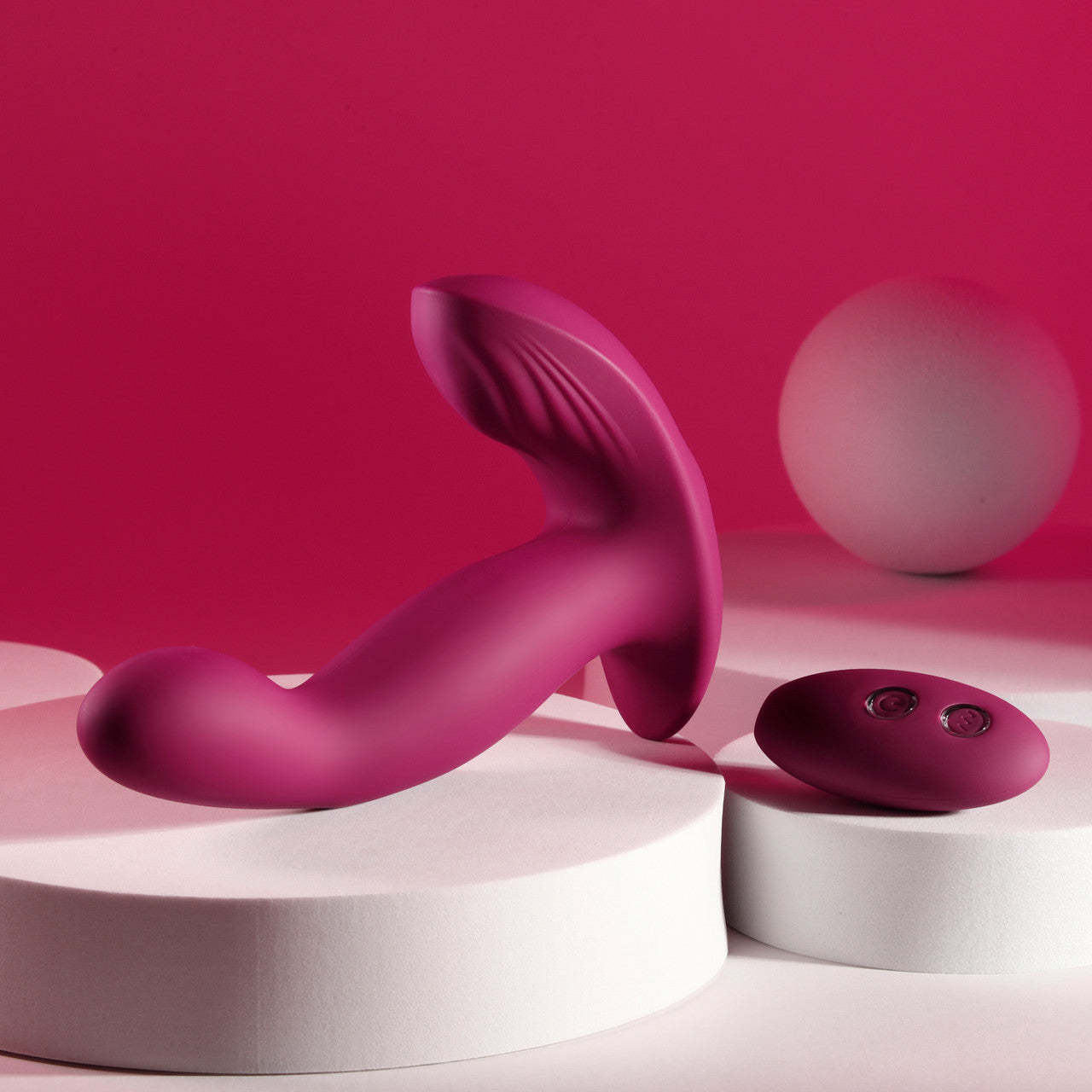 Come on over! Experience the unique pleasure of a creamy-smooth curved shaft with an intense come-hither motion in its gently swelled head while the chunky base emanates powerful vibrations and doubles as a safety base. Each motor operates independently with either direct buttons or via remote control.