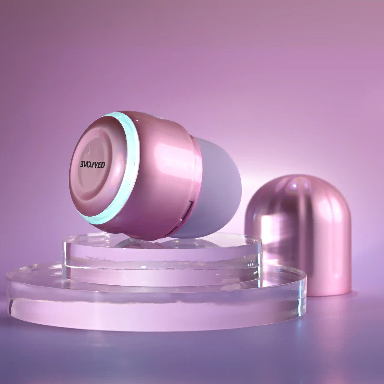Tap into Vacation Vibes anytime with this chunky pink-pearl iridescent toy that delivers pulses to wherever you crave them most. The discreet textured canister lid pops off to reveal the rounded silicone tapping head. A colorful changing light in the base and a one-touch control button make it effortless to navigate. Specs: 5 tapping speeds & patterns Insertable length: 1.25”, Insertable diameter: 1.61” Made from phthalate & latex-free Silicone & ABS Height: 3.37”, Depth: 1.92”, Width: 1.92” USB-C rechargeable, cable included Waterproof