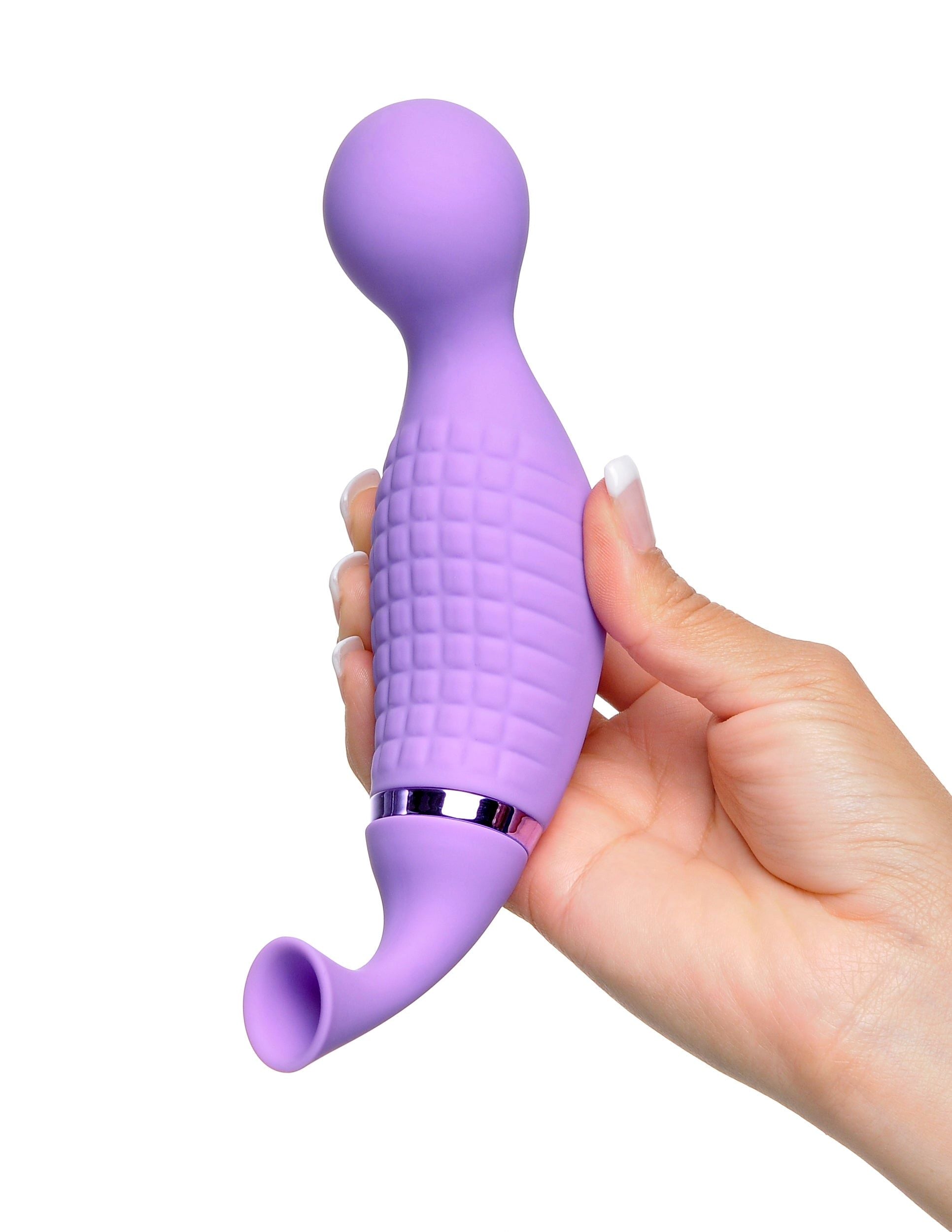 Fantasy For Her Tease Her Remote Silicone Petite Clitoral Vibrator Purple from Pipedream Products. Her fantasy was to give herself the ultimate orgasm. She had heard that suction from an Ultimate Climax Her would surround her clitoris and nipples in intense oral sex sensations, but vibration always made her orgasmic. Now she could enjoy both with her Ultimate Climax Her. She pressed the button to begin the powerful vibrations on her Climax Her and sighed as she placed it against her swelling clit. She slid the vibrating bulb through her damp lips and placed it hungrily against her hole. Her breathing became heavier as she took the long suction hose at the other end of her Climax Her and placed it over her sensitive clitoris. She replaced the long hose with a shorter, precise suction cup and concentrated again on her aroused clitoris. The teasing suction seduced her senses and she was lost in her passion. The powerful orgasm seemed to last forever and she found herself breathlessly trembling as her body shook with incredible, ultimate pleasure.