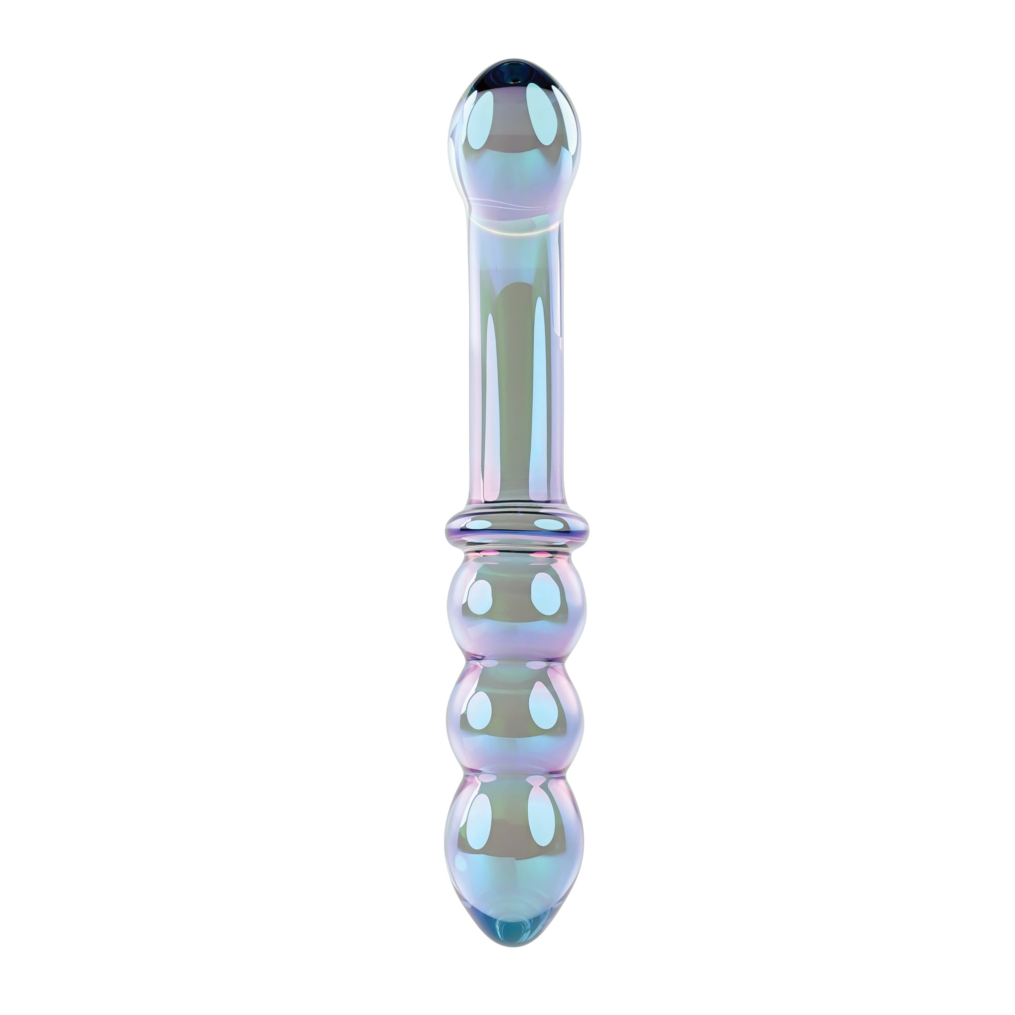 Features: dual ended glass massager. Made from body safe Borosilicate Glass. Immerse in warm or cool water for temperature play. One tapered tip triple beaded end. One curved, bulbous tip end. Iridescent green, blue and violet coloring. Length 7.3 inches, depth 1.22 inches, width 1.22 inches. Bulk weight under .5 pounds. Phthalate free and latex free. Nonporous, extremely hygienic. Waterproof, non-vibrating wand. Categories: Glass Wands, Probes, Sticks, Rods, Dildos, Dongs, Sex Toys for Women, G-Spot. 2023.