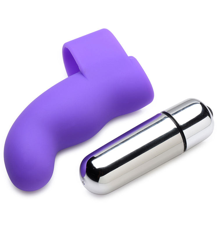 Mini Finger Vibe. Ribbed with a G-Spot Curve. Includes a Bullet Vibrator with batteries. 100% seamless Silicone with Silicone. Silk. Waterproof vibrations.Tiny and powerful Vibrator. Soft and luxurious Silicone. Ergonomic palm sized. Travel ready. Care and maintenance: clean with toy cleaner. Rinse with warm water. Pat dry before storing. Pleas use only with water based personal lubricants. Product details: Dimensions overall length 3.3 inches, insertable length 2 inches, widest insertable diameter 1 inch. Ring opening diameter 0.7 inch. Bulk weight 1.5 ounces. Material: Sleeves Soft and luxurious Silicone. Product type Vibrator. Color: Purple, Violet. Battery operated Vibrator requires 3 LR44 batteries, included. Categories: Vibrators, Finger Vibrators, G-Spot Vibrator, Sex Toys for Women, Vibrating Bullets and Eggs. 2023.