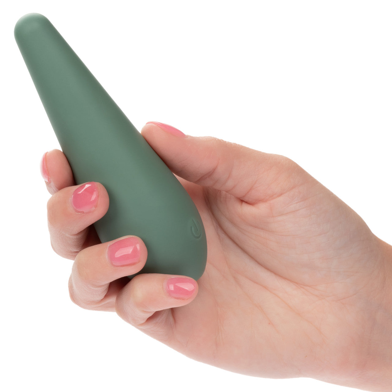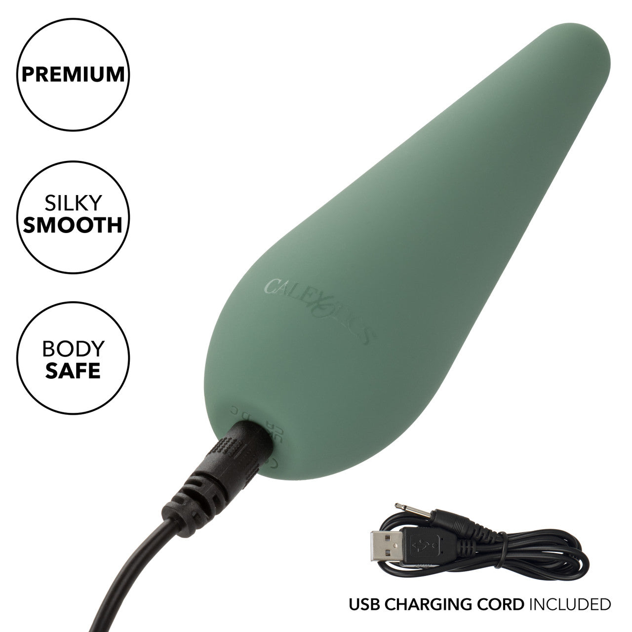 Mod Chic Massager from California Exotic Novelties. Embark on an exquisite journey of discovery with Mod Chíc, a massager that's designed for precision and pleasure. Its soft, pinpoint tip is perfect for tantalizing play, inviting you to explore the landscape of your desires with a touch that is as gentle or as powerful as your passions demand. With 10 speeds of intense vibration, this device is a versatile powerhouse of pleasure. Each speed offers a unique experience, from a delicate whisper to a deep rumble, allowing you to tailor your journey to the perfect rhythm. The control is in your hands, making every session a personalized dance of vibration and sensation. This massager is crafted from Liquid Silicone, a material celebrated for its superior softness, smoothness, and durability. Not only is it pleasant to the touch, but it's also waterproof with an IPX7 rating, opening up possibilities for exploration in the bath, shower, or any place where water plays a part in your pleasure. The quality of this device ensures it is a lasting companion on your quest for satisfaction. Thoughtfully designed with your convenience in mind, this massager features a state of the art memory chip that remembers your last speed setting. The security travel lock, activated with a three-second hold, provides peace of mind as you take your pleasure on the road. USB rechargeable and complete with a charging cord, it is ready after just 2 hours of charging, offering 60 minutes of high speed intensity or a luxurious 100 minutes on a lower speed. Mod Chíc is a gateway to new experiences, ensuring every moment is as limitless as your imagination.