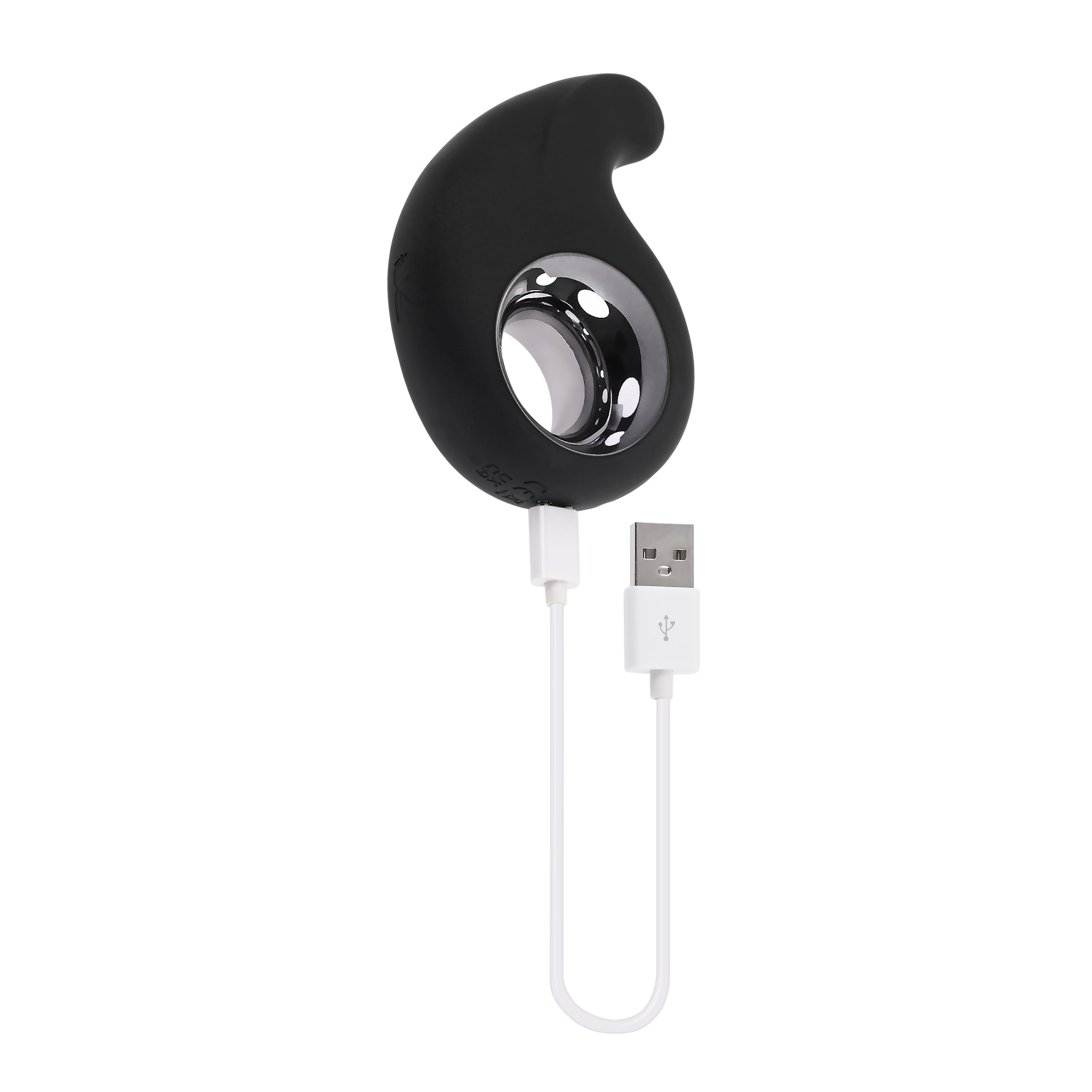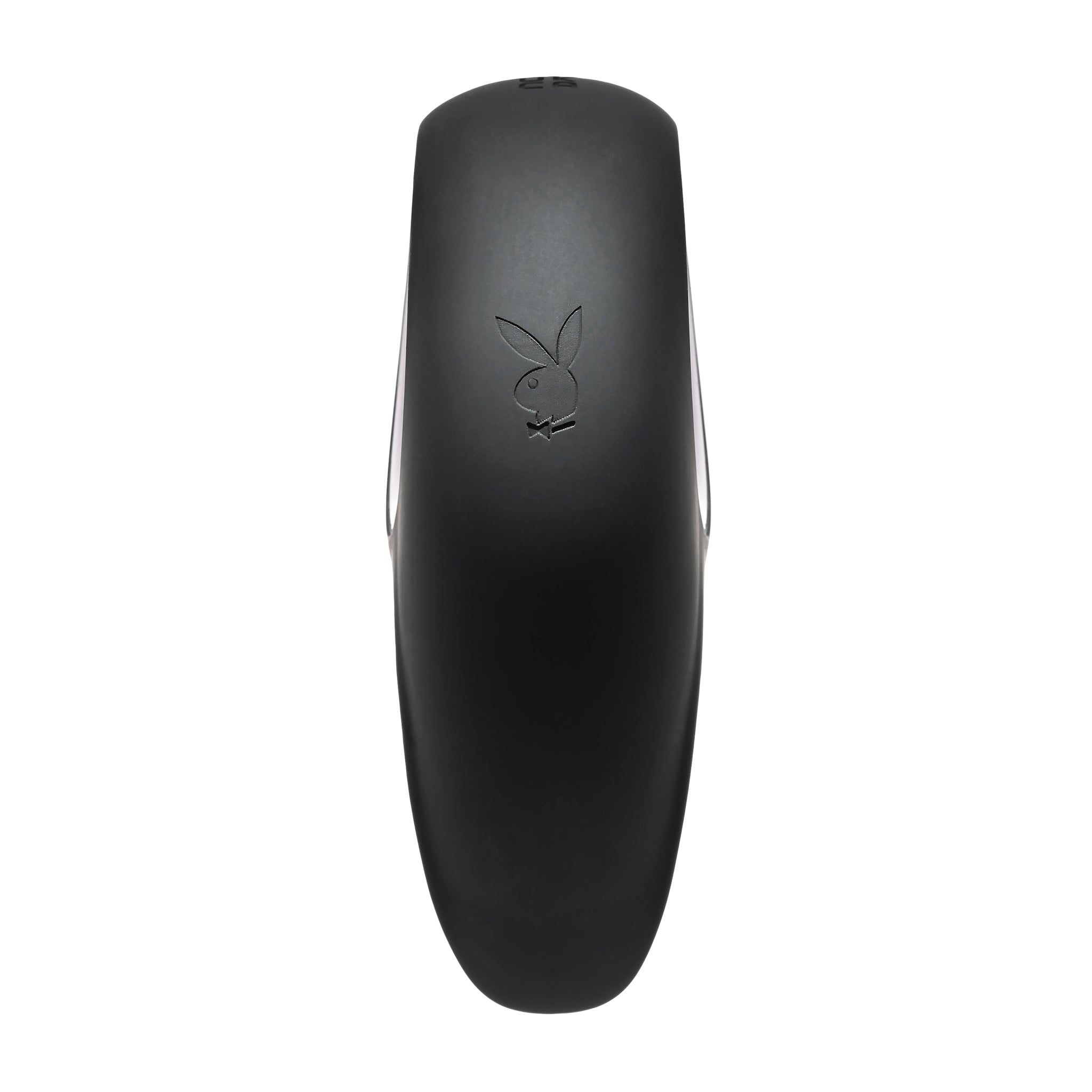 Playboy Pleasure Ring My Bell Vibrator from Evolved Novelties. Freedom to Play: come full circle with Ring My Bell. This Ring shaped toy creates a unique experience ideal for those looking for a combination of light contact and powerful pleasure. The petite tip offers shallow penetration with 10 vibrating speeds and functions. Combine with your choice of 10 pulsing rhythms from the external tapper for a whole new spin on dual stimulation. The comfortable chrome lined Ring makes this sex toy easy to hold or use with a partner. Play with me key feature: external tapping spot, shallow penetrative vibrating tip. Vibration: 10 vibrating speeds and rhythms, 10 tapping speeds and rhythms. Material: body safe Silicone, phthalate free and latex free. Waterproof vibrations. 5 years warranty. Rechargeable via a USB cable, included. Size height 3.9 inches. Depth 2.69 inches. Width 1.34 inches. Insertable length 1 inch, insertable diameter 0.82 inch. Categories: Vibrators, Clitoral Stimulators, Sex Toys for Couples, Love Rings, Rechargeable Vibrators, Clit Cuddlers. 2 A.M. color. Playboy and Rabbit Head design are registered trademarks of Playboy International. All rights reserved. 2023.