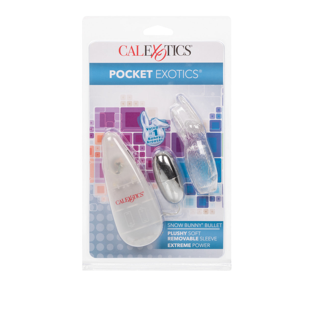 Pocket Exotics Snow Bunny Bullet Vibrator Clear Set from California Exotic Novelties. Voted the #1 Bunny Arouser, Pocket Exotics Snow Bunny Bullet Vibrator comes in a Pretty Pink as sensual as the Vibrating experience it creates. This high intensity Vibrating Bullet with removable, dual action Bunny Teaser comes with a multi-speed Power Pack and plenty of sleek style. It is as safe as it is sensually satisfying and exciting too, with a bunny crafted of Thermoplastic Elastomers TPE, a Controller of Polypropylene PP and the Bullet Vibrator itself of pure ABS Plastic with a Silver Plating. The pleasure is intense with this powerful and gratifying stimulator. It is one smooth, sturdy, sexy, and satiating pleasure Bullet Vibrator. With this Bunny, the pleasure is all yours. Our Bunny Stimulator shoots right to the heart of your heat, serving up new levels of satisfaction. Enjoy it on your own or with a partner - either way, a new sensual adventure awaits. We have what you need for pure enjoyment and sensual fun. Go ahead, get hopping! High intensity Vibrating Bullet with removable, dual action Bunny Teaser. Multi-speed power pack. Safe and pure for body and pleasure made using phthalate free materials Thermoplastic Elastomers TPE Bunny Vibrator Sleeve, Polypropylene PP Controller, ABS Plastic with Silver Plating Bullet Vibrator. 4 inches by 1 inch Snow Bunny Sleeve. 2 inches by 1 inch Bullet Vibe. Bulk weight 3.1 ounces. Vibrating sex toy requires 2 AA batteries, not included. Do not leave batteries in the vibrator between uses. Safe and pure for body and pleasure. Made using phthalate free, non-toxic materials Polypropylene PP Power Controller, ABS Plastic with Silver Plating Bullet Vibrator. Always clean before and after use plus between partners. Rinse with warm water. Pat dry before storing. 1 year warranty. Pocket Exotics Snow Bunny Bullet Vibrator is a registered trademark for California Exotic Novelties. Sex toys and sexual wellness. Categories: Vibrators, Bullets, Eggs, Sex Toys for Women, Vibrating Bullets and Eggs. 2023.