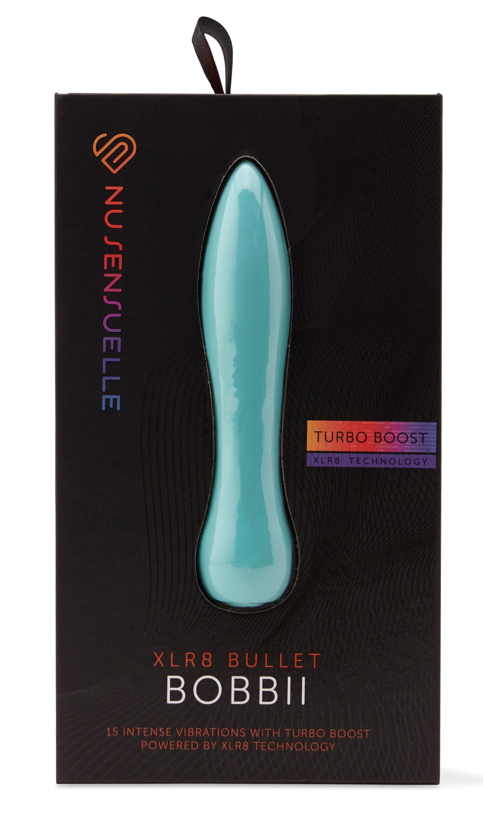 Sensuelle Bobbii XLR8 Electric Blue Vibrator. Accelerate your pleasure with the unique turbo boost. Unique 12 second turbo boost. With unique Turbo feature. USB Rechargeable Vibrator features 15 functions of deep throbbing and pulsating action. Plus this Power Packed Bullet Vibrator is also flexible so you can adjust it to your unique shape. Ultra smooth, silky, sensual touch in a flexible design. It is everything you have come expect from NU Sensuelle, the leader in cutting edge vibration technology. Material Silicone. Waterproof vibrations. Phthalates free. USB Rechargeable from any USB port. Vibrator is made from the following materials: Body safe Silicone. SIize: 1.12 inches by 5.04 inches. Weight: .168 of a pound. Bobbii comes with Speed Plus + Pulsations: 7 speeds and 8 pulsations. Charge type: Pinpoint USB charging port. Charging time: fully charged within 2 hours, user time: 40 minutes to 50 minutes. Estimate of play time is due to the speed you use. Interface: 1 operating button. 2 years warranty. Always use a water based personal lubricant. Clean before and after use. Rinse with warm water. Pat dry before storing. Categories: Vibrators, Rechargeable Vibrators, Flexible Vibrators, Sex Toys for Couples, Men, Women, Flexible Vibrators. Restricted, Amazon Restricted. 2023.