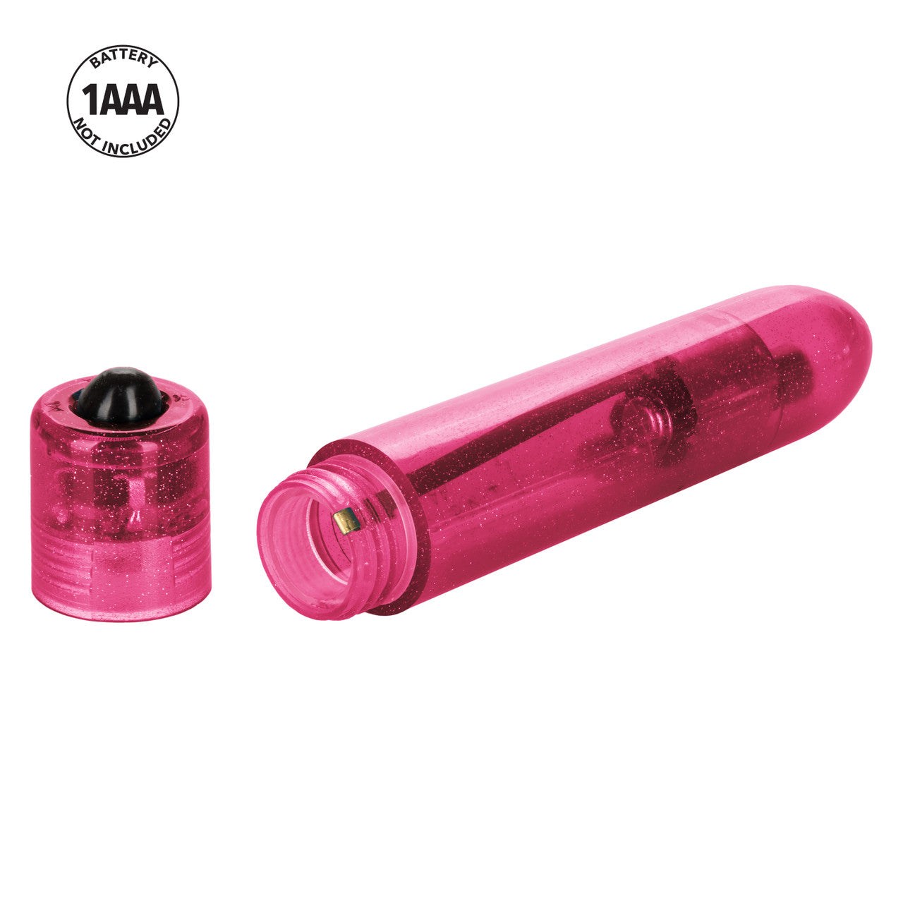 Shane's World Sparkle Bullet Vibrator Pink from California Exotic Novelties. Designed for the perfect discretion no matter where you travel, this beautiful compact product is ready to go whenever and wherever you are. Enjoy the ultimate in pleasure. Designed for easy use, you will find operation a snap even on the darkest night. Frustration free and perfect for pleasure, just one push brings intense stimulation your way. Good things really do come in small packages! The Shane’s World Sparkle Bullet is a sure thing when it comes to the bedroom. Designed to be totally simple and totally discreet, this amazing 3 speed massager is the perfect starter product for first time users, or a handy little carry on device for weekends away. Uncomplicated and free from any overly intricate features, this toy is designed with a single button that offers one touch activation. This intimate massager has a fun and spunky glitter finish that makes it shine and sparkle in a tantalizing and alluring fashion. The seamless ABS Plastic material is completely safe anywhere on the body. With a 100% waterproof design, you can have stimulating fun in the tub or the shower too. This little naughty toy is perfect for use alone or with a partner. Do not forget to enhance your experience with our Universal Lube.