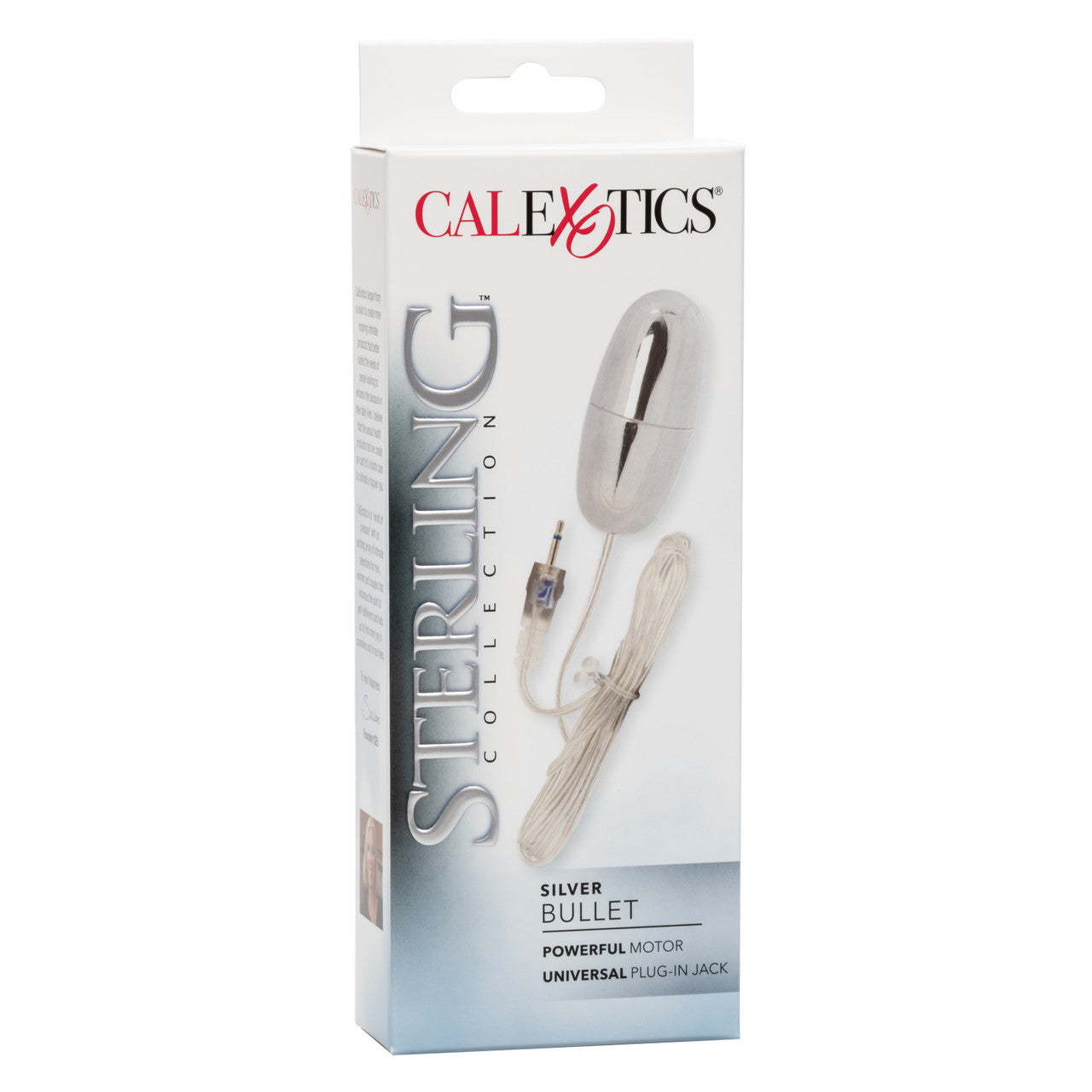 Sterling Collection Silver Bullet from California Exotic Novelties. Sophisticated women deserve sophisticated choices to match their style and deliver on their every desire. Creating your dream sex toy is easy with the Sterling Collection. This Collection is the first interchangeable collection of Controllers, Plug in Jacks and Bullets that are available in individual packaging for mix and match fun or in pre-designed sets for carefully curated optimum pleasure. The Sterling Collection’s Silver Bullet is a sleek, elegant Bullet that shimmers and shines with naughty possibility. The Bullet is a classic and powerful pleasure tool that provides targeted stimulation and plenty of room for creativity. It is perfect for play both alone and with a partner and it is especially heavenly when rubbed against your lips or pressed against your Clitoris for powerful vibrating bliss. The Stimulator features a Plug in Jack for easy attachment to the controller of your choice. Keep it classic with the glamorous 2 speed controller or go wild with desire as you cycle through 7 Speeds. This Collection features dozens of unique items, including Controllers, Stimulators and Textured Bullet Sleeves. Pick a Controller with as many speeds as you desire to power the sensual Stimulator. Once you pick your Controller, explore our wide array of sensually ribbed Bullet Sleeves that offer a thrilling variety of sensations and textures to tickle, tease, and please you to incredible orgasms. Bullet Vibrator comes with a cord Plug in Jack. Bullet Vibrator is made using phthalate free, non-toxic materials ABS Plastic with a Silver Plating. Please note this item does not come with a Power Supply or Controller. Sold separately. You will need SE109921 or SE109922 to operate. Bullet vibrator measures 2.25 inches long by 1 inch wide. Bulk weight: 1.4 ounces. Always clean before and after use. Sterling Collection Silver Bullet is a registered trademark for California Exotic Novelties. Sex toys and sexual wellness. Categories: Vibrators, Bullets, Eggs, Sex Toys for Women, Vibrating Bullets and Eggs. 1 year warranty. 2023.