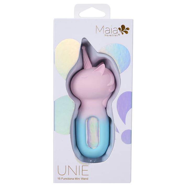 UNIE is our adorable, unicorn design massage wand. UNIE has 16-Vibrating Functions wrapped into a soft and sensuous Silicone body. Use the unique shape to create multiple stimulating points. UNIE is fully submersible for wet fun. Rechargeable with a 90 minute charge time, UNIE runs at full power for 45 minutes. UNIE is 5.8 inches long and includes our 1-YEAR WARRANTY. Operating Instructions Press and hold the Control Button for 3 seconds to power your item on. Press and release the Control Button to cycle through the 16-vibration settings. Press and hold the Control Button for 3 seconds to turn your item off.