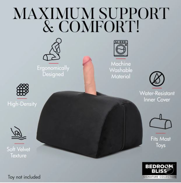 Humping, grinding or riding your favorite dildo, vibrator or toy has never been easier! With this ergonomic saddle pillow made of high-density foam, you can insert your favorite toy into the pocket and ride it hands-free! The soft outer cover and the water-resistant inner cover protect the foam during even the wettest rides. Both covers are machine washable so caring for your saddle is easy! Enjoy hands-free stimulation as you straddle the ultra soft pillow, effortlessly lifted up so you can enjoy your partner's passionate affections or angle yourself to ride the toy of your choosing! The toy pocket at the top fits most toys but is especially designed for wands, vibrators and dildos. Spice up your sex life and use a vibrator while getting penetrated by your partner!