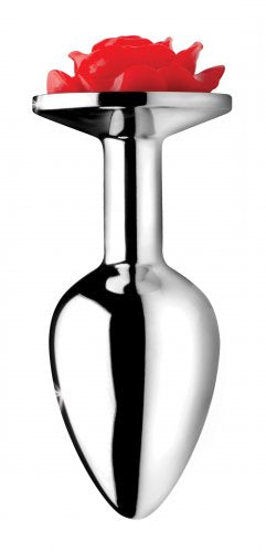 Booty Sparks Red Rose Small Anal Plug from XR Brands. Beautify your booty with this shining red rose! Featuring a smooth metal finish in light weight Aluminum, it features a lovely flower at the end which will flash as you bend over and tease your lover. The slim shaft will keep it from slipping out of place even during vigorous play. The Nickel free Aluminum Alloy is nicely weighted and temperature sensitive for the perfect amount of sensation. When play is over, the non-porous material will clean easily without harboring any harmful bacteria. Make that booty bloom! Measurements: 3 inches in total length, 2 inches insertion length, 1 inch in diameter. Materials: Aluminum Alloy Body Butt Plug, ABS Plastic Faux Rose. Color: Red. Categories: Anal Toys, Small and Medium Butt Plugs. 2023.