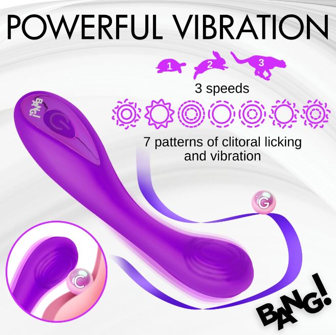 Get the power and pleasure right where you want it with this G-spot vibrator! The wide, round head is slightly ribbed for extra stimulation and shaped to stimulate your G-spot! The shaft itself is extra firm and flexible for a strong but bendy toy that forms to your custom shape! Enjoy 3 speeds and 7 patterns of powerful, buzzing vibration! The silky smooth, premium silicone is phthalate-free and body-safe. Use only with water-based lubricants for best results. Take it in the shower, too! It's rated IPX^ waterproof so it can handle powerful jets but should not be submerged underwater. Recharge using the USB cable provided. To clean, wash with warm water and mild soap, then rinse it and spray with a toy cleaner before letting it air dry. Grab some lube and rub it on the G-spot end of the toy. Turn it on and then rub the rest of the lube onto your lips. As you start to part your lips, let the vibrations do some of the work of warming you up! Play with the angle, slipping it about 2 inches inside until you feel the vibrations on the inside of your honeypot. Imagine rubbing the space facing your bellybutton. As you feel the sensations increase, the pressure build, and your cavern get wetter, bear down and let your juices flow with a mighty climax! Measurements: Overall length: 5.4 inches. Insertable length: 3.75 inches. Widest insertable diameter: 1 inches.