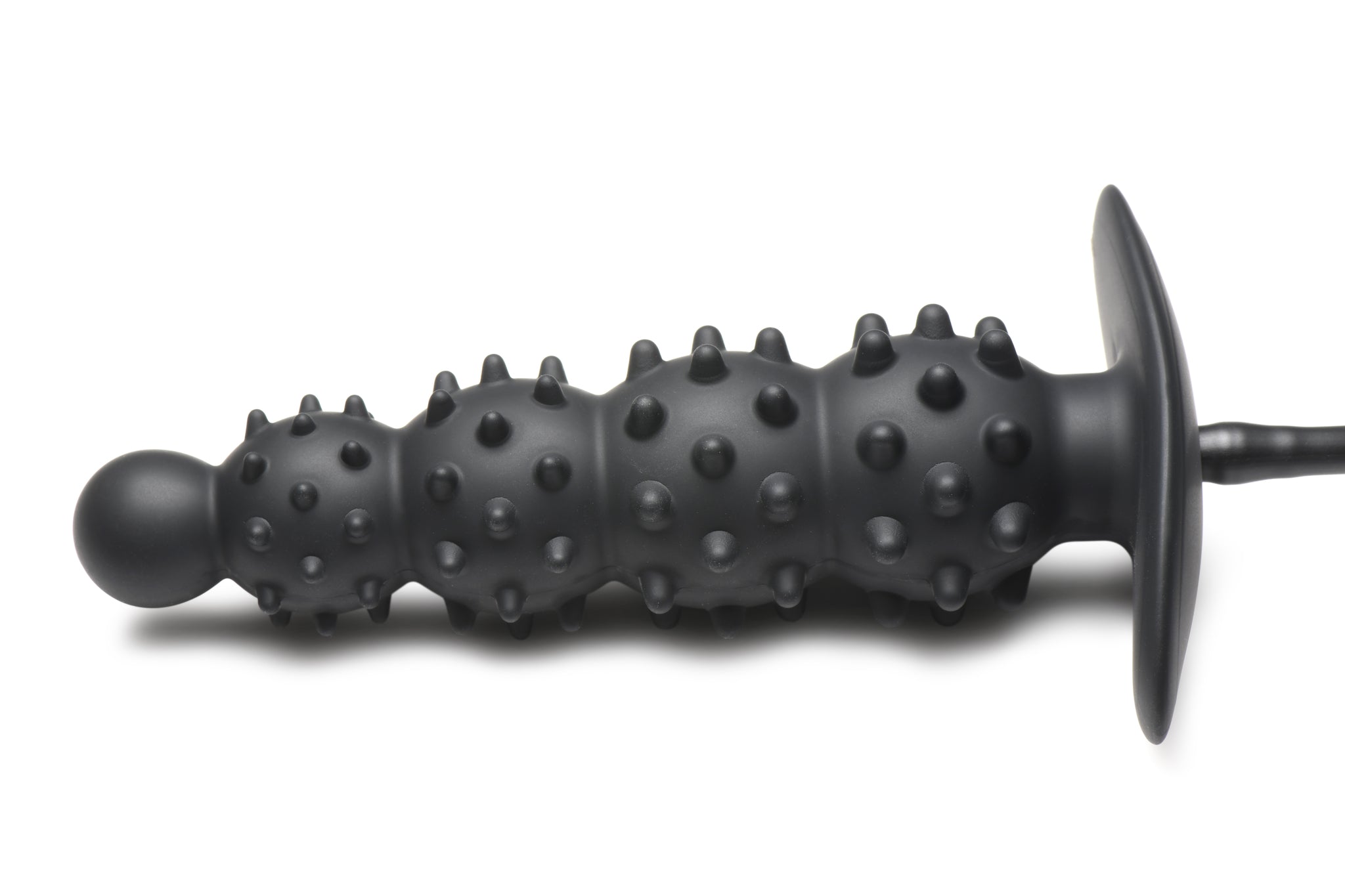 Master Series Ass Puffer Nubbed Inflatable Silicone Anal Plug from XR Brands. Ass Puffer Nubbed Inflatable Silicone Anal Plug Ready for intense stimulation? This Inflatable Anal Plug is designed to enahnce sensation and stretch you from within! All along the Shaft of Graduated Bulbs are small, spiky nubs that add texture to your backdoor during entry and while inside. With soft, round heads they are perfectly safe to enjoy but look wicked. The Anal Plug has a firm, inner core that makes insertion easier. With the help of some lubricant, you can push the plug inside and enjoy the feeling of it entering your backdoor. Once inside, the stretchy, premium Silicone Bulb around the Plug's core is inflatable! Use the Pump to expand it while it is inside and enjoy the internal stretch! You will feel the pressure build and press against your A-Spot or P-Spot, adding to your arousal. The pump has a built in Quick Release Valve so you can release the pressure fast or slow, depending on your comfort and desire. The premium Silicone Anal Plug is phthalate free, body safe and best used with a water based lubricant only. Wash it thoroughly after every use with warm water and mild soap, then spray it with toy cleaner and let air dry. Keep out of direct sunlight. Anchor shaped base prevents Butt Plug from getting lost up there. Measurements of the Ass Puffer: overall length: 30 inches. Deflated 6 inches insertable length, 2 inches widest insertable diameter. Inflated 7.75 inches insertable length, 3 inches widest insertable diameter. Materials: Anal Plug Silicone, Hose and Bulb PVC, Metal Quick release valve. Color: Black. Key features:heightened sensations. This stimulating, textured anal plug is covered with soft, round spikes. The Beads of the Anal Plug get bigger the deeper you go. Inflatable. This Anal Plug inflates to increase pressure inside your rear while inserted. Comes with a Quick Release Valve for slow or quick deflation. Easy insertion. The firm inner core makes insertion easier by giving you something firm to push inside. Premium Silicone. This Anal Plug is made out of premium, phthalate free, body safe Silicone. Use only with water based lubricants for best results. Categories: Anal Toys, Large, Huge Butt Plugs, Inflatable Butt Plugs. 2023.