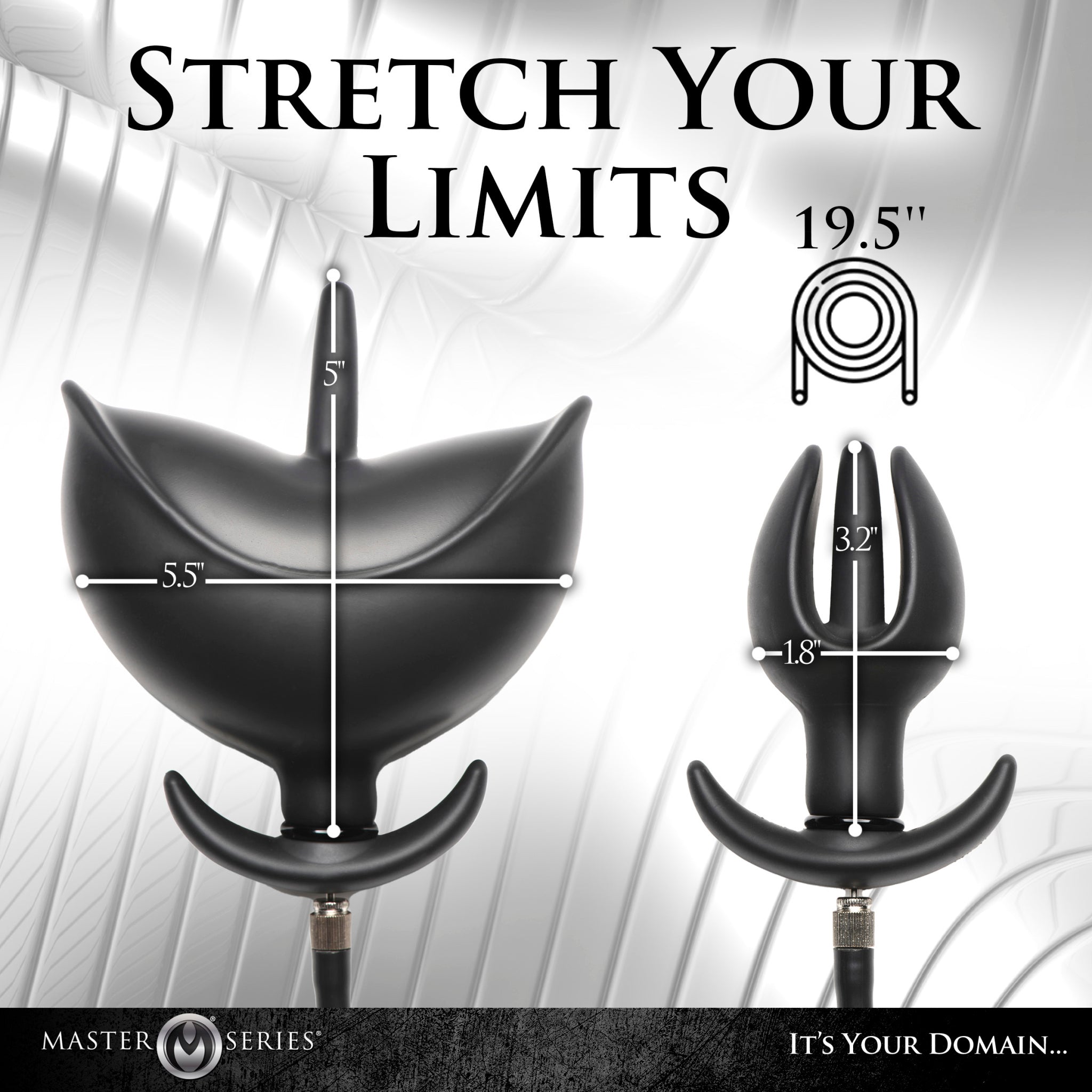 Master Series Bad Buoy Anchor Inflatable Anal Plug from XR Brands. Long term wear. Get ready to turn the pressure up with this Inflatable Anchor Anal Plug! The smooth, soft Silicone has a tapered tip in the center and curved, round sides to the Anchor for easier insertion. Anal enthusiasts of all levels will enjoy how the 3.2 inches long and 1.8 inches wide Bad Buoy Anal Plug expands to 5 inches long and 5.5 inches wide! The intense pressure build up from within will press against the internal sphincter as the flanged base keeps the Plug anchored in place. After using the soft, Silicone Bulb to pump up the Plug to your chosen degree of inflation, you can remove the hose and the Plug will stay inflated! Enjoy the feeling of being filled up to your limit! Once you have got the Anal Plug inside, use the bulb to pump up the Plug. As it inflates, take your time and go slow. The hose has a built in quick release valve that lets you control pressure decrease. You can choose to deflate fast or slow! Use plenty of water based personal lubricant on the premium Silicone Anal Plug and enjoy how it presses against the sensitive nerves and erogenous zones inside you. Pressure may build and push against the A-Spot or P-Spot giving you even more extreme pleasure as you play with yourself or a partner! After you are done, deflate the anal toy and carefully remove it. After cleaning yourself up as much as you like, wash the anal toy with warm water and mild soap, then spray it with a toy cleaner and let it air dry. Measurements: overall length 27.25 inches. Deflated: 3.2 inches insertable length, 1.8 inches widest insertable diameter. Inflated 5 inches insertable length, 5.5 inches widest insertable diameter. Materials: Plug Silicone, Hose and Bulb PVC, Metal. Color: Black. Note: use only with water based lubricants. Wash after each use. Key features: Inflatable Silicone Plug. This anchor shaped Anal Plug can be pushed inside while less than 2 inches in diameter and 3 inches long and then inflated to approximately 5 inches deep by 5.5 inches wide! Removable Hose. The Plug can stay in place and inflated even after the hose is removed. Tapered Tip: The tapered tip and smooth, round sides of the anchor make insertion easier. Quick Release. The inflatable Plug comes with a pump that has a sofft bulb for easy pumping and a quick release valve that lets you control the speed and release pressure fast or slow. Soft Silicone. Made out of soft, smooth, premium Silicone. Categories: Anal Toys, Prostate Massagers, P-Spot Stimulators, Inflatable Prostate Massagers, Probes, Sticks and Rods, Inflatable Butt Plugs. 2023.