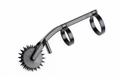 Master Series Thorn Double Finger Pinwheel Black from XR Brands. Use a light touch to offer your partner fluttering, delicate sensation play or dig the small, sharp spikes in deep to really get their attention. This light weight double pin wheel finger toy is great for any part of the body you can imagine. Each wheel features 20 small spikes, with two rings that are designed to fit most fingers. Prick, tickle or punish the play is up to you! Measurements 4 inches in length, inner ring diameter 0.8 inch. Material: ABS Plastic. Color: Black. Categories: Bondage, Fetish, Kink, Health and Beauty Aids, Sex Toys for Couples, Whips, Paddles, Ticklers. 2023.