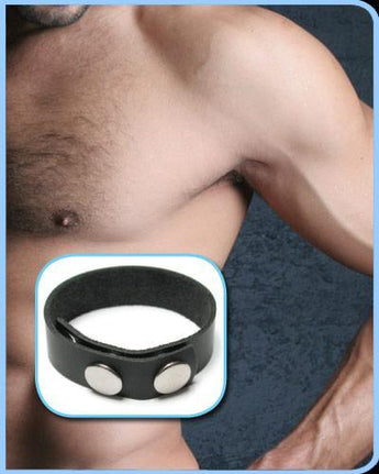 Kink Lab 3 Snap Leather Cock Ring. Simple and effective, this leather cock strap ensures a stronger, firmer erection and more lasting sessions between the sheets. Made of a smooth leather top and soft unfinished interior, it is designed to wrap around the shaft of the erection. Three snaps allow for a customized fit, with the unused settings facing into the band, not the wearer's skin, for a comfortable experience. Also available in a rubber version, this classic sex toy is one no man should be without. Color: Black. Type: Cock Strap / Cock Ring. Materials: Leather, Metal. Closure: Snap. Special
