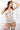 Irresistible apron style halter mini dress features a deep neckline, ruffled trims, diamante side details and open rear view wrapped with satin ribbon includes matching thong and lace garters