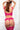 4pc Laced Demi Strappy Bustier, Garter Belt, Thong, Stockings - Os -Raspberry Roe