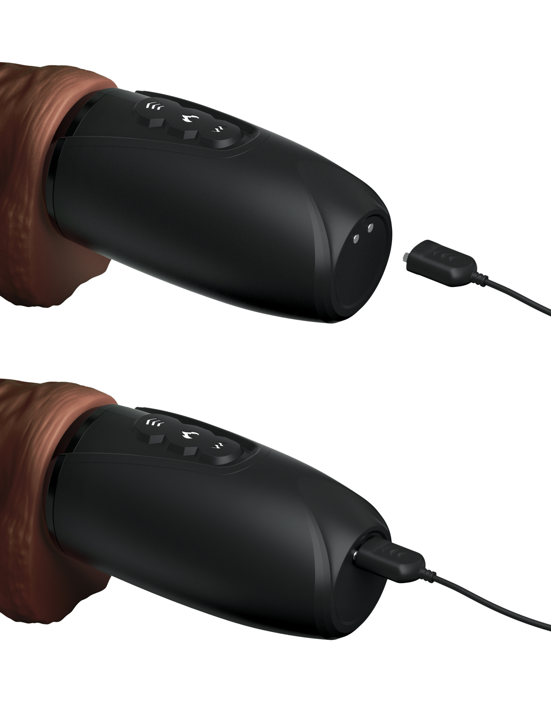 The King Cock Plus® Thrusting Cock With Balls is truly a triple threat that features 1” deep piston powered thrusting motion, internal warming up to the body temperature in minutes, and powerful stimulating vibrations for the ultimate experience. Thrusting pleasure is designed to be naturally responsive, massaging your every movement—fast or slow.