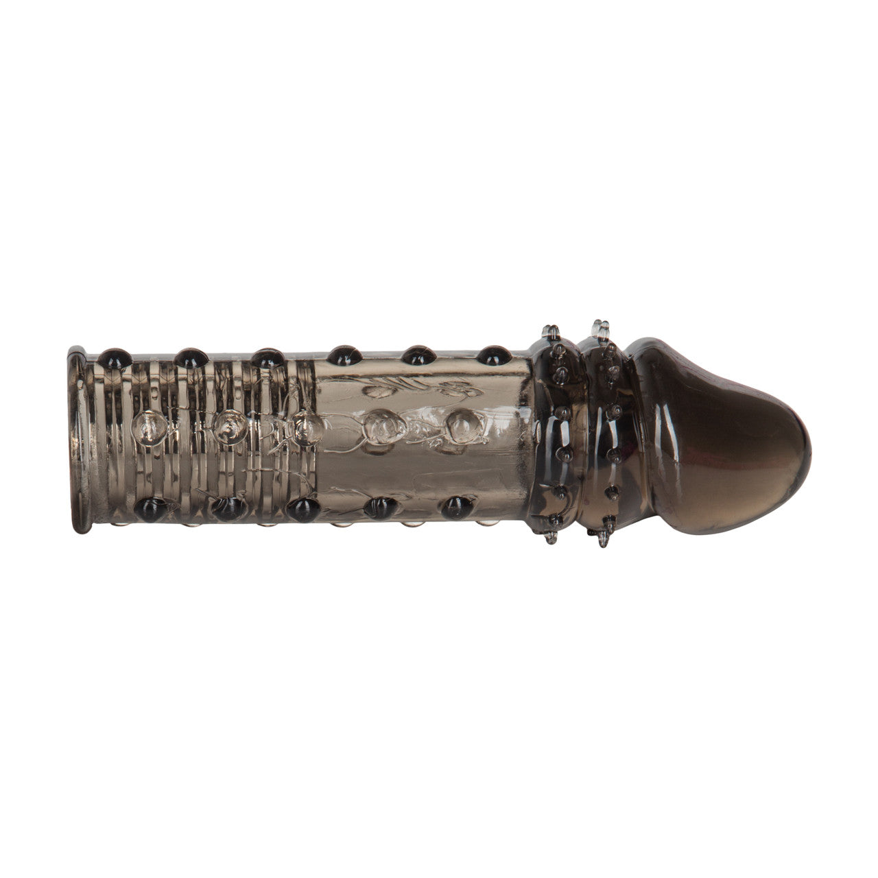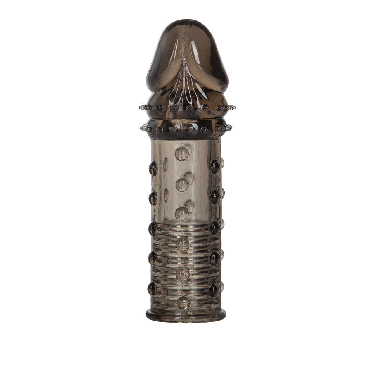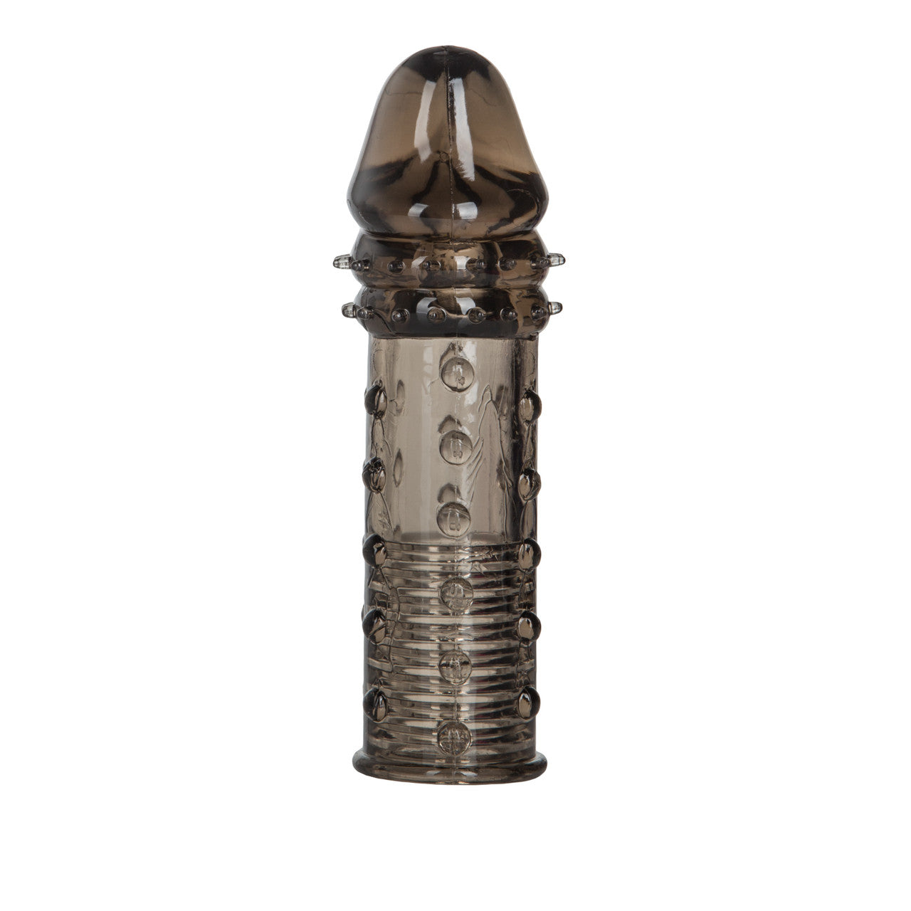 Apollo Extender Smoke Penis Extension. Stretchy and comfortable, the Apollo Extender adds 2 inches to an erect length. Designed to increase the natural length, girth and at the same time add stimulating texture, the penis extender has an attractive, pleasure enhancing design that is sure to satisfy. Textured ribbing inside and out will please both you and your partner, adding extra zing to any encounter. This penis extender is completelytranslucent, allowing sexy visibility along with thrilling enhancement. Along with increasing both length and girth, the extender improves stamina so that you can stay harder longer and stronger. Crafted from a completely safe, phthalate free, Thermoplastic Rubber TPR material, the extender is as safe as it is satiating. Thoroughly compatible with Water Based Personal Lubricants and Silicone Based Personal Lubricants, the Extender stimulates and supports, created for the ultimate in comfort and an exciting, sensual experience. With sleek styling and a comfortable fit, this extender offers everything you need to get exactly what you want. So get ready, get set, and get ready to enjoy an extended sexual adventure that will have you both craving more. Stretchy and comfortable extender. Adds 2 inches to length. Textured ribbing inside and out. Discreetly enhances both length and girth. Safe and pure for body and pleasure made using phthalate free materials Thermoplastic Rubber TPR. Bulk weight 3.6 ounces. 6.25 inches by 1.5 inches. 1 year warranty. Categories: Vibrator Sleeves, Penis Enhancers, Male Extensions, Penis Sleeves, French Ticklers. 2023.