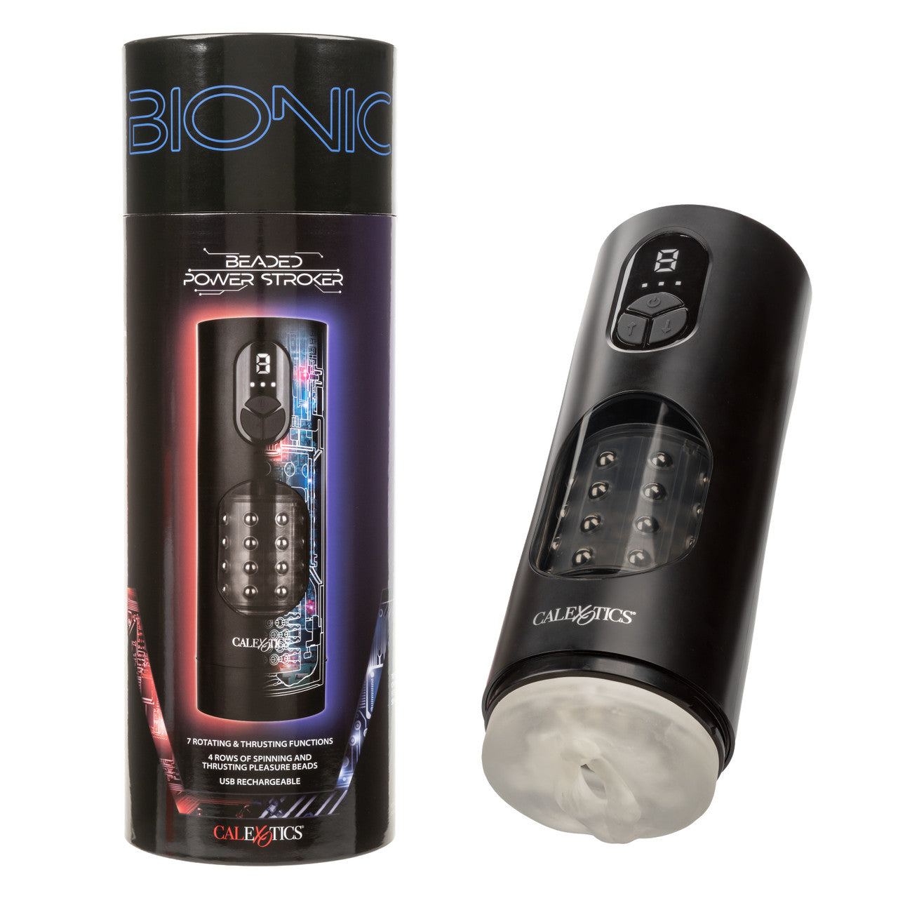 Step into a realm of unparalleled pleasure with the Bionic Beaded Power Stroker, designed to deliver the ultimate experience. This self-contained marvel features seven tantalizing functions of stroking and rotating beads. Each of the 4 rows of beads spins and thrusts you into waves of ecstasy. Simply cycle up or down through the functions using the intuitive controls and find the rhythm that moves you.The Bionic Beaded Power Stroker isn't just a powerhouse of technology; it's a masterpiece of design. Its ultra-tight, life-like sleeve mimics the most intimate of touches, and the removable cap ensures that everything stays clean and contained when not in use. Whether you're in the mood for a quick escape or a prolonged indulgence, this stroker is ready to go whenever you are.Equipped with a state-of-the-art memory chip, the Bionic Beaded Power Stroker remembers exactly where you left off. Resume your last session with ease, and dive back into your favorite sensations without missing a beat. The security travel lock feature ensures your adventures stay discreet, activating with a simple hold for 3 seconds to turn on.Ready for action anytime, this USB-C rechargeable stroker charges completely in just 2 hours and delivers up to 90 minutes of high-speed pleasure or 120 minutes on a lower speed. Perfect for those who appreciate a sophisticated touch in their pleasure play, the Bionic Beaded Power Stroker is ready to transform your private moments into thrilling escapes.